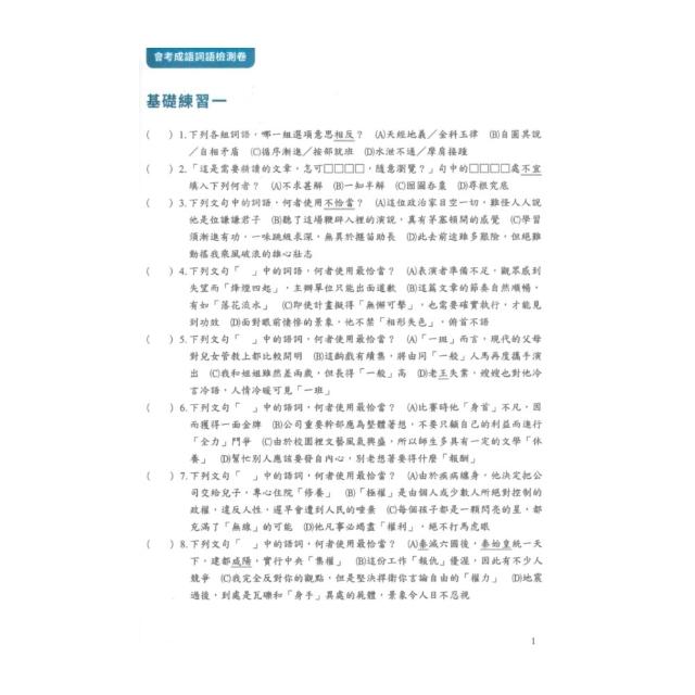 華逵文教螢火蟲國中會考成語詞語檢測卷