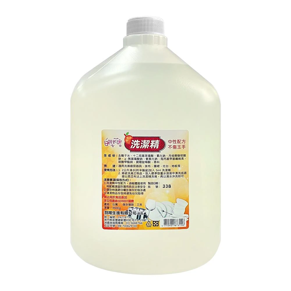 台灣製 白櫻花®營業用洗潔精3500g (一箱4瓶) 廚房清潔劑.中性去油污清潔液.大容量沙拉脫非洗碗精餐廳