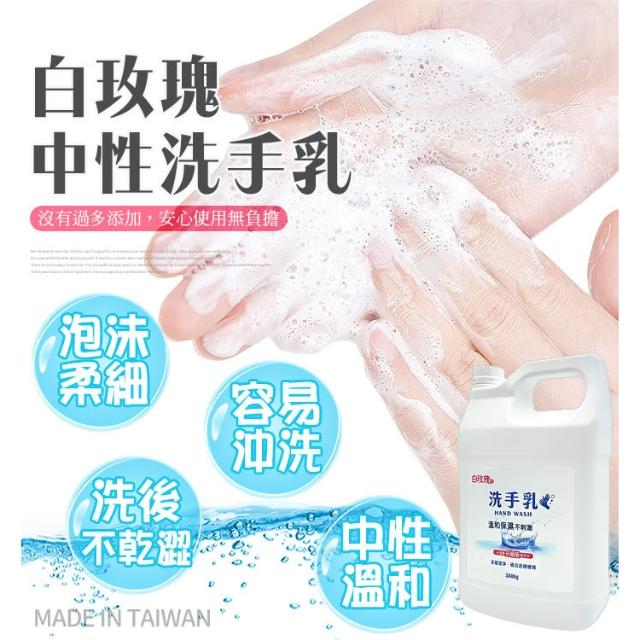 白玫瑰台灣製 白玫瑰®中性洗手乳3800g 清潔手部洗手液.純中性溫和低污染清潔劑.醫院政府機關皆使用ISO認証