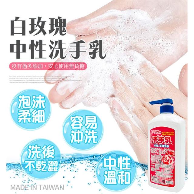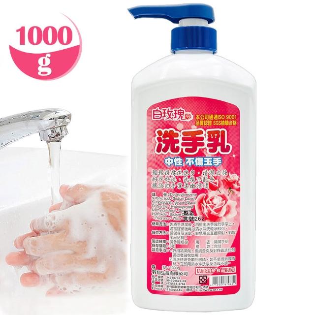 白玫瑰台灣製 白玫瑰®中性洗手乳1000g 清潔手部洗手液.純中性溫和低污染清潔劑.醫院政府機關皆使用ISO認証