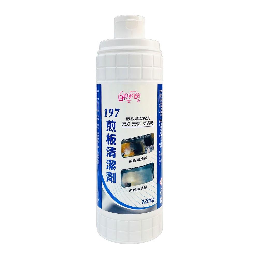 台灣製 白櫻花®197煎板清潔劑1200g SGS認證早餐店煎台清潔液.鑄鐵板燒店清潔.小吃店煎板台.洗煎檯