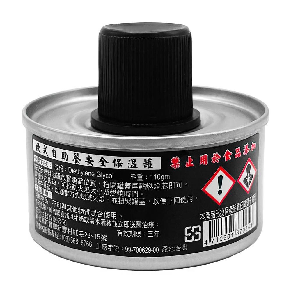 台灣製 燈芯燃料罐110g (一箱120入)單頭液體狀保溫罐.歐式自助火罐頭.飯店餐廳歐罐.露營烤肉油罐.文字爐迷你廚房