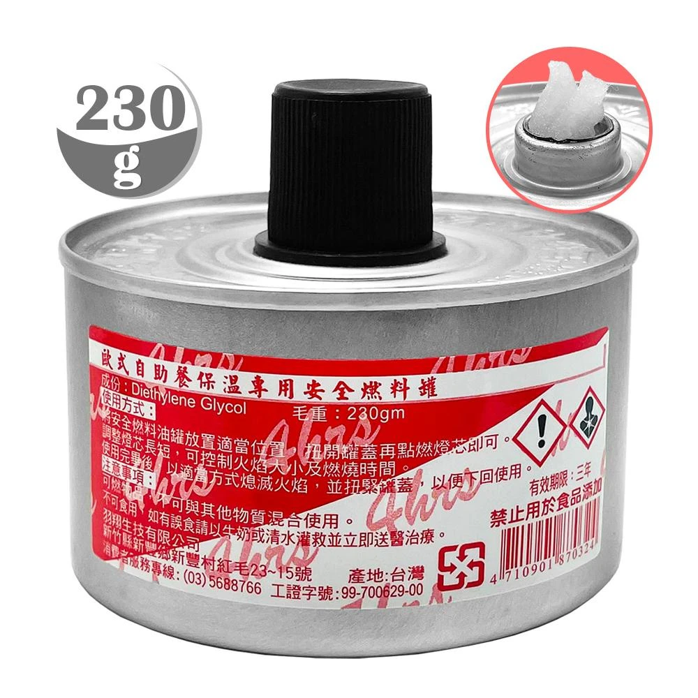 台灣製 燈芯燃料罐230g 單頭液體狀保溫罐.歐式自助火罐頭.飯店餐廳歐罐.露營烤肉油罐.文字爐續熱非酒精罐
