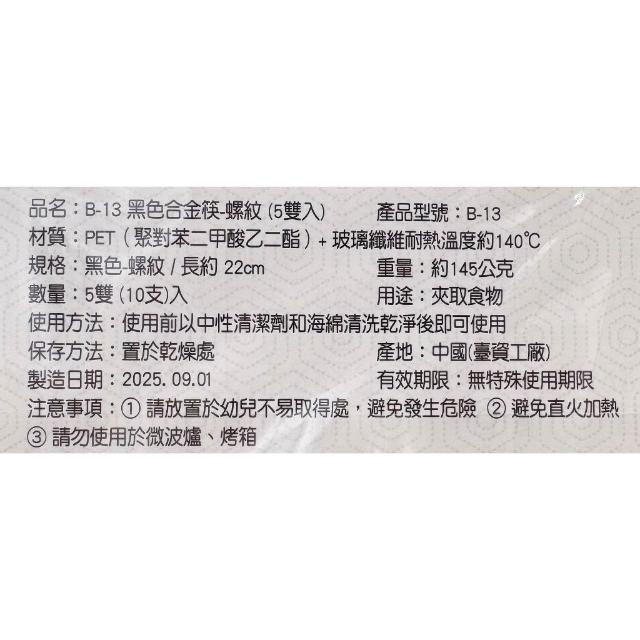 王樣 一包5雙入 合金 餐具 筷子 合金筷 螺旋筷 六角筷 條紋筷 筷