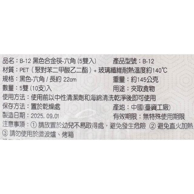 王樣 一包5雙入 合金 餐具 筷子 合金筷 螺旋筷 六角筷 條紋筷 筷
