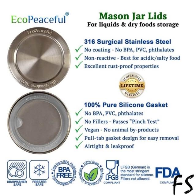 美國 EcoPeaceful 梅森杯蓋 梅森杯 梅森瓶 密封蓋 不銹鋼蓋 杯蓋 316不鏽鋼