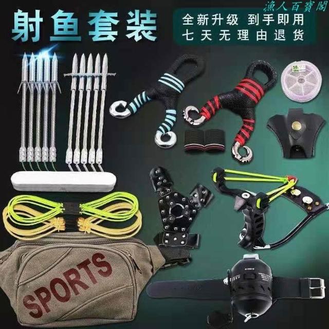 🦈港邊釣具社🔥熱銷爆款🔥 彈弓射魚器套裝 魚鏢魚標箭皮筋打魚 綠鬣蜥彈弓 彈弓射魚 彈弓射魚器 巴雷特彈弓射魚彈弓