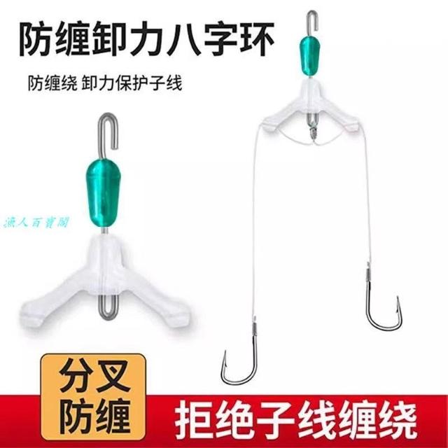 🦈熱銷爆款 快拆防纏繞八字環快掛子線分叉器魚鉤分線夾硅膠雙鉤防纏豆連接器