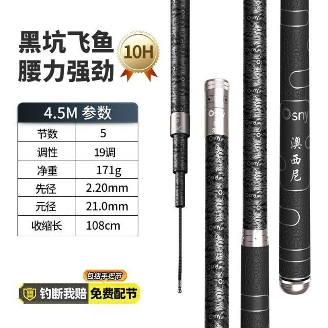 🦈港邊釣具社🔥【店鋪熱銷】澳西尼黑坑釣魚竿手桿超硬十大19調黑棍8H飛磕6H羅非10H