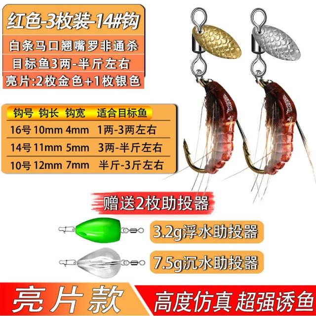 🦈港邊釣具社🔥路亞仿真若蟲飛蠅鉤亮片改裝旋轉假餌白條馬口翹嘴羅非鯽鯉黑魚