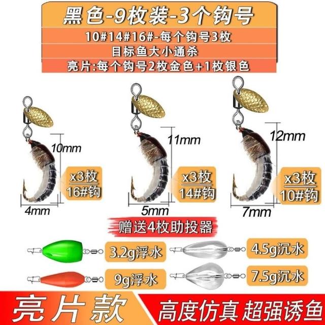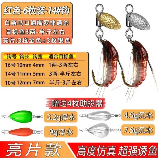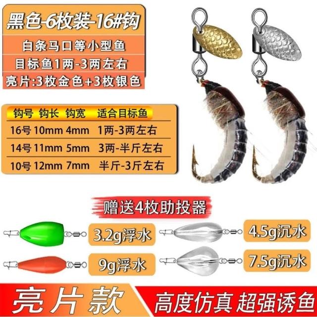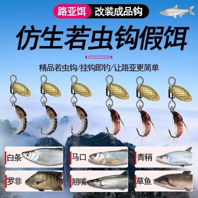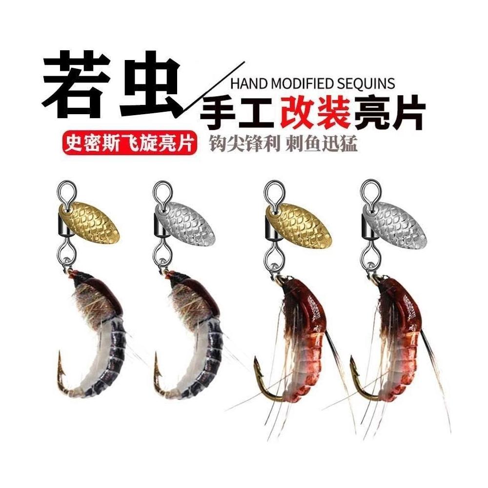 🦈港邊釣具社🔥路亞仿真若蟲飛蠅鉤亮片改裝旋轉假餌白條馬口翹嘴羅非鯽鯉黑魚