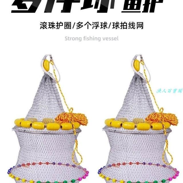 🦈港邊釣具社🥇 大力馬浮漂魚護海釣魚護網多浮球漁護便攜式折疊釣魚網兜裝魚網袋