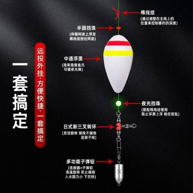 🦈港邊釣具社 海釣船釣遠投漂鱸魚釣組套裝磯釣阿波漂漂鱸線組三叉轉環鉛墜配件