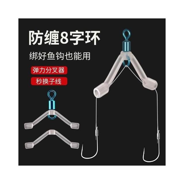 🦈台灣出貨 新型纏繞八字子線連接器分叉用品漁具硅膠彈簧垂釣配件環子分線器