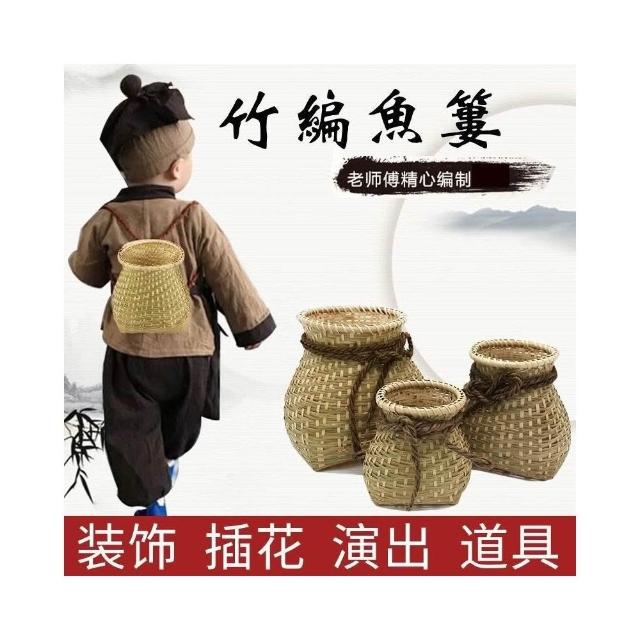 🦈港邊釣具社🔥手工竹編魚簍舞蹈演出道具花籃收納筐茶簍竹簍兒童小背簍吊籃裝飾