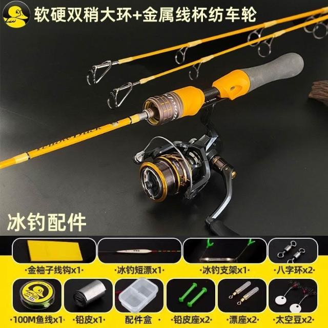 🦈港邊釣具社🦈小黃鴨冰釣竿軟硬雙稍冬釣魚竿鯽魚鯉魚拋竿路亞竿短節便攜大環