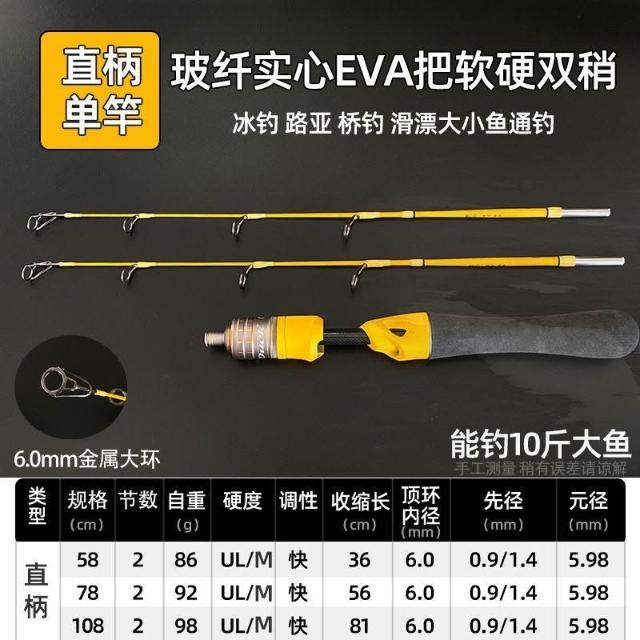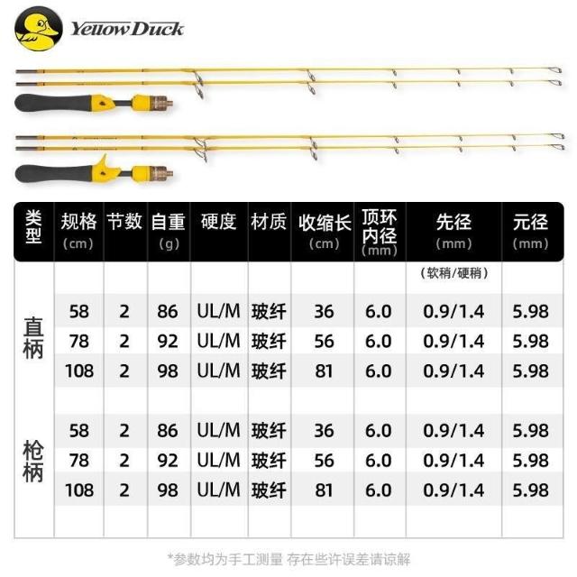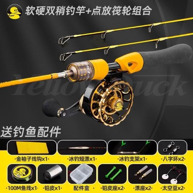 🦈港邊釣具社🦈小黃鴨冰釣竿軟硬雙稍冬釣魚竿鯽魚鯉魚拋竿路亞竿短節便攜大環