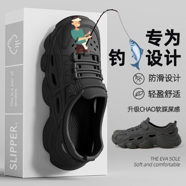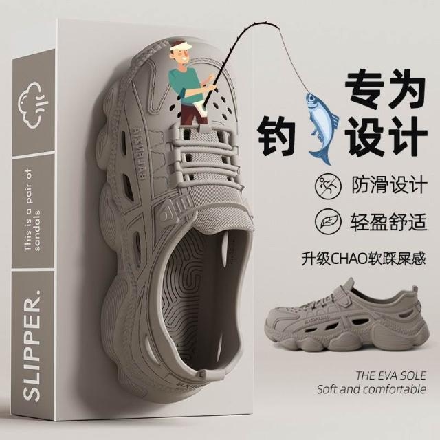 🦈港邊釣具社🦈涉水洞洞鞋男款夏季外穿2025新款增高戶外防滑釣魚專用涼鞋男士夏