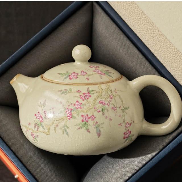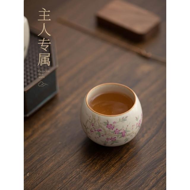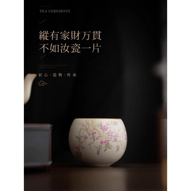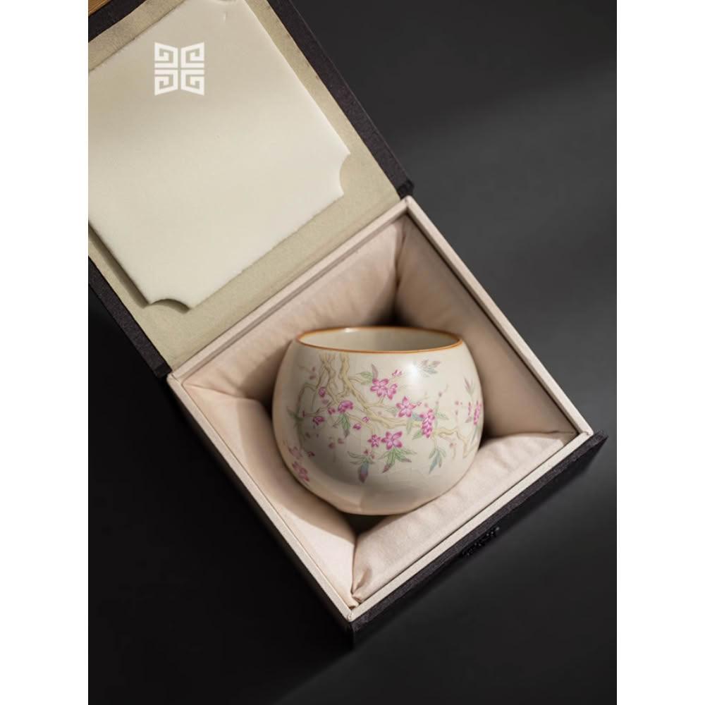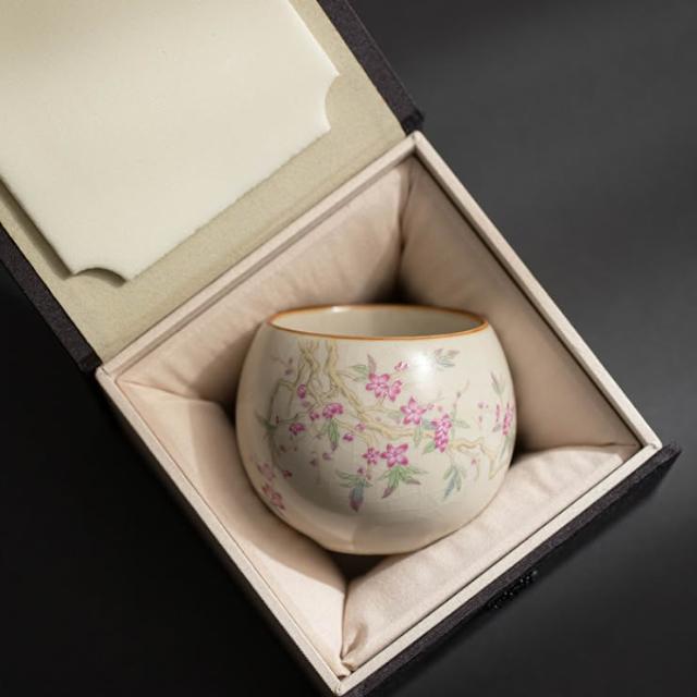 桃枝汝窯 高端禮盒裝 需養杯 金絲 汝窯開片 小院燒製 稀少生產 禮盒茶杯 送禮杯 主人杯 商務禮盒
