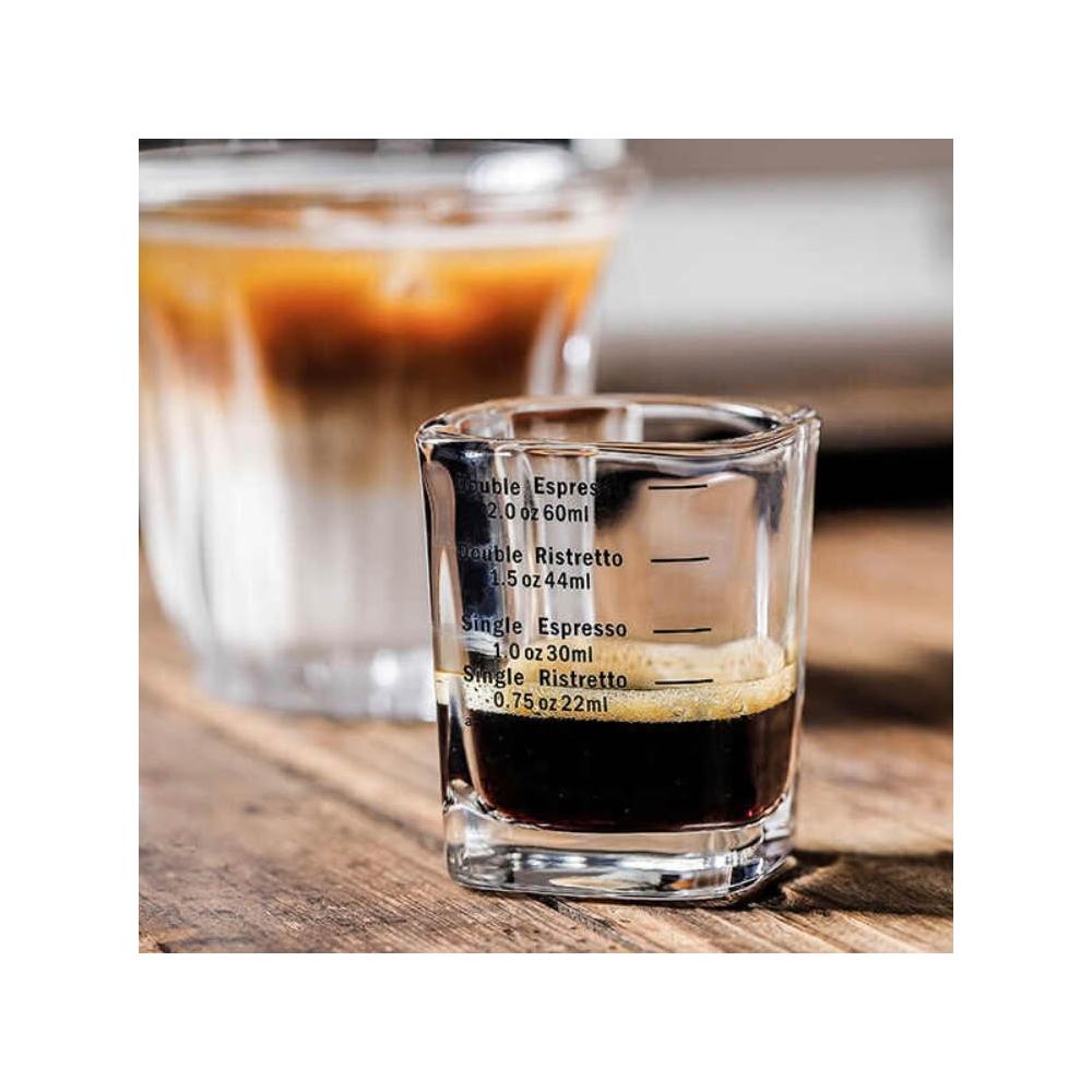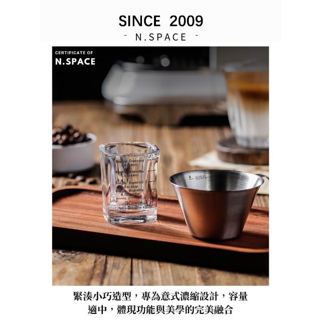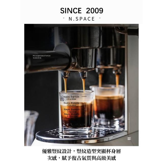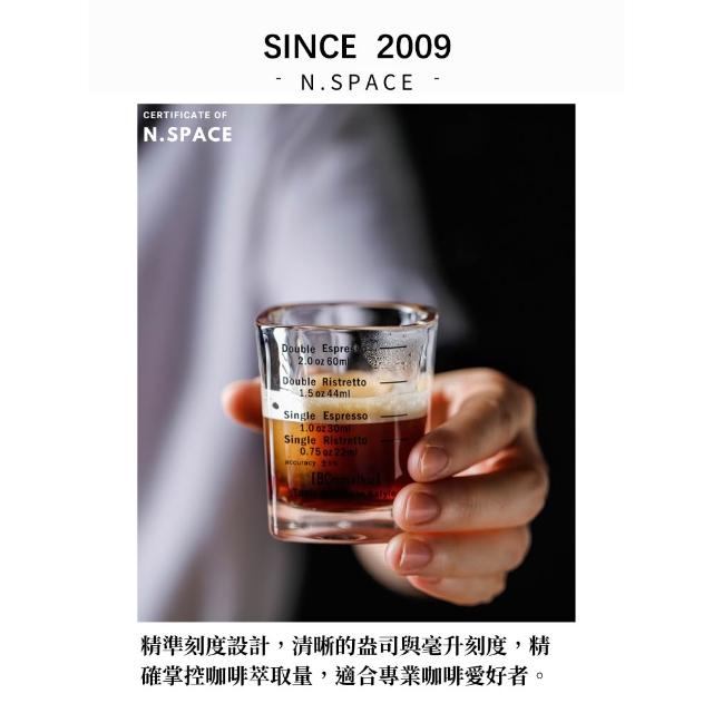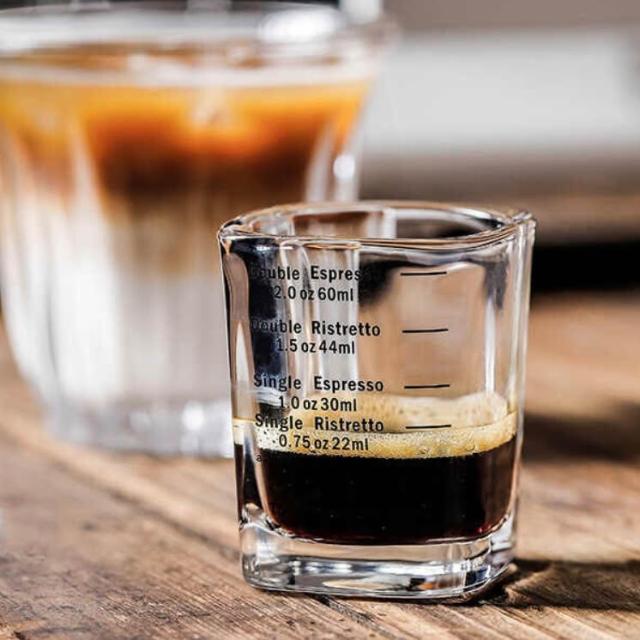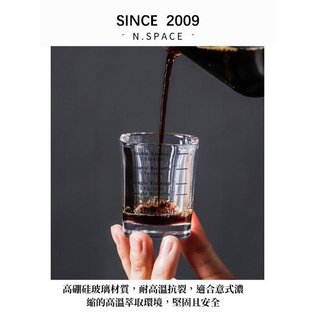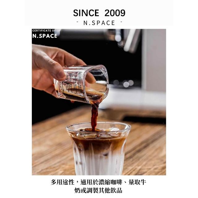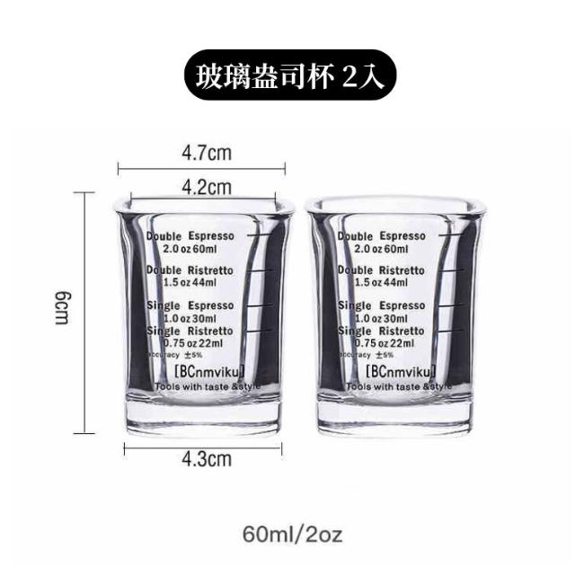 兩入組玻璃盎司杯 透明刻度 100ML 雙出水口 木柄把手萃取量杯 萃取量杯 咖啡量杯 小奶杯