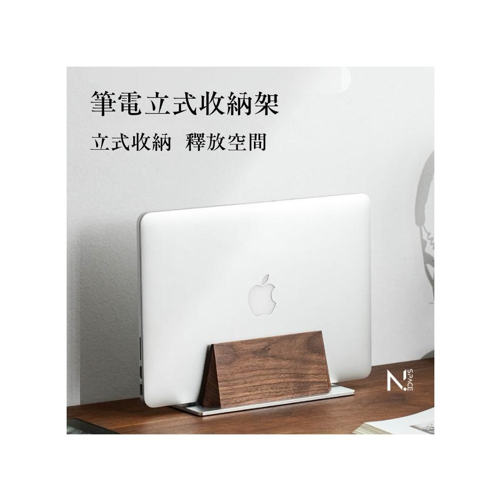 黑胡桃木筆電直立支架 矽膠保護 原木筆電立 頂級木材 百年耐用 胡桃木書立 誠品質感 無印質感
