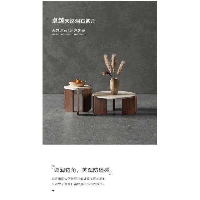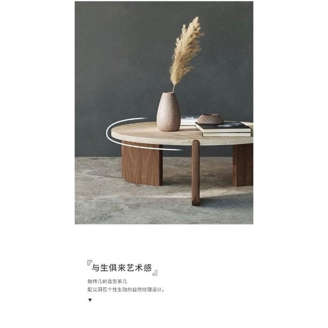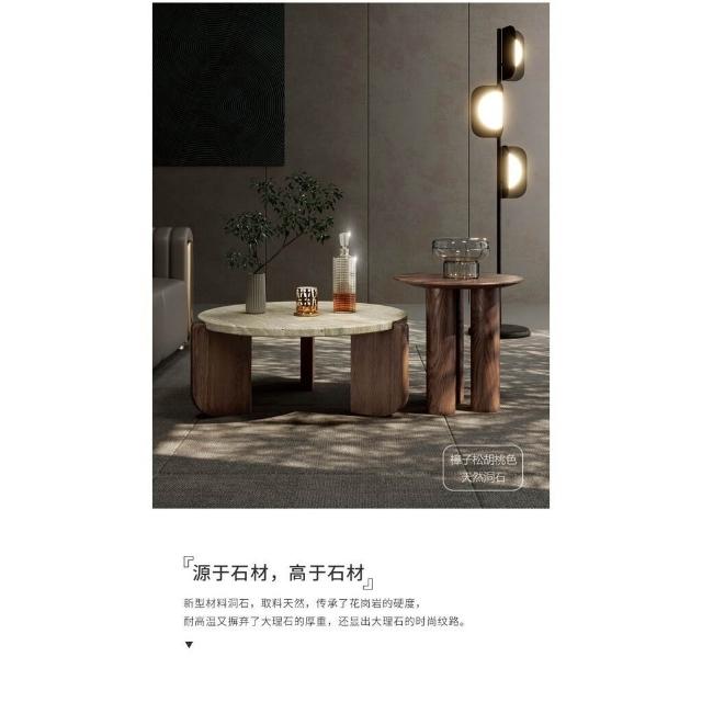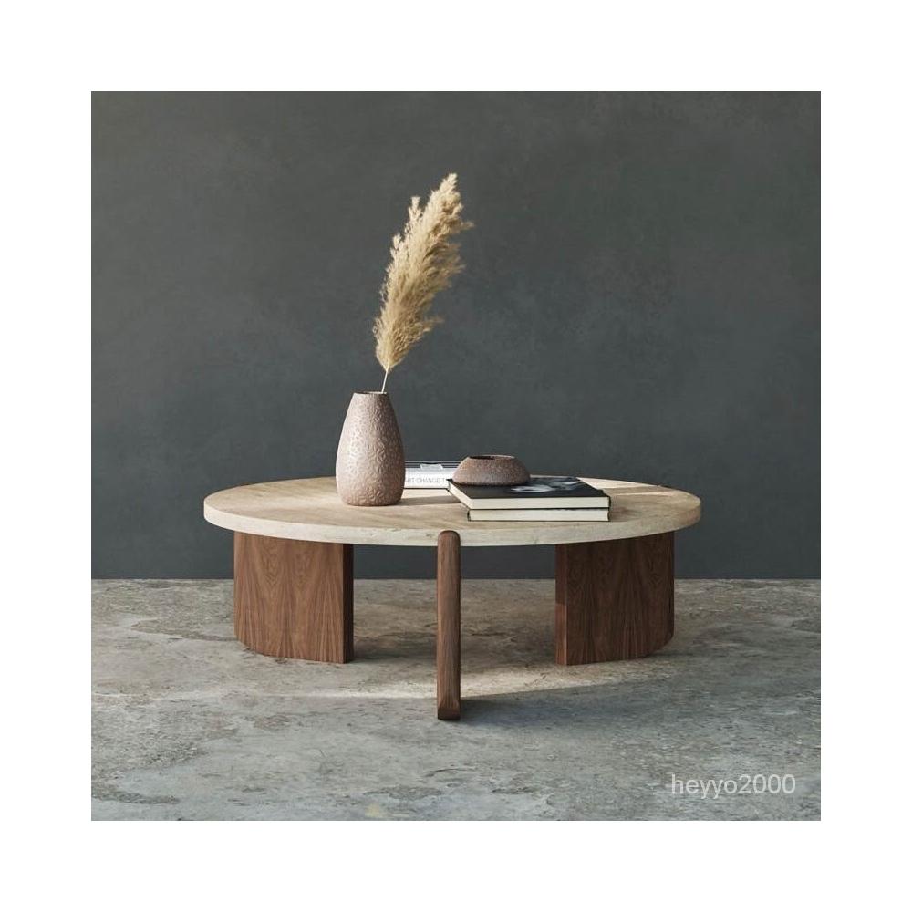 免運到樓 侘寂風天然圓形洞石茶幾小戶型客廳傢用現代簡約民宿大理石咖啡桌 MJFF