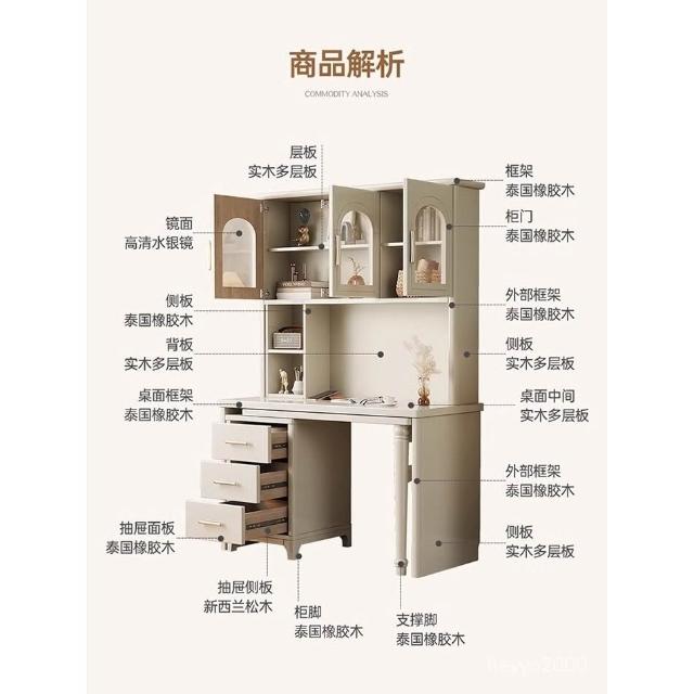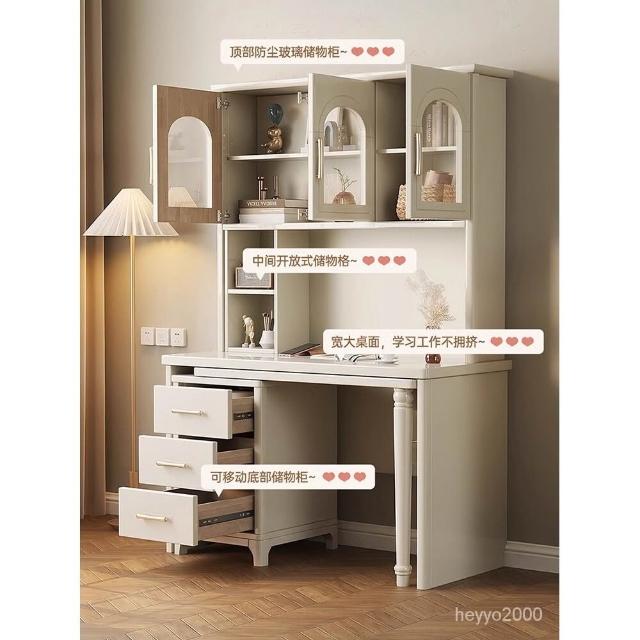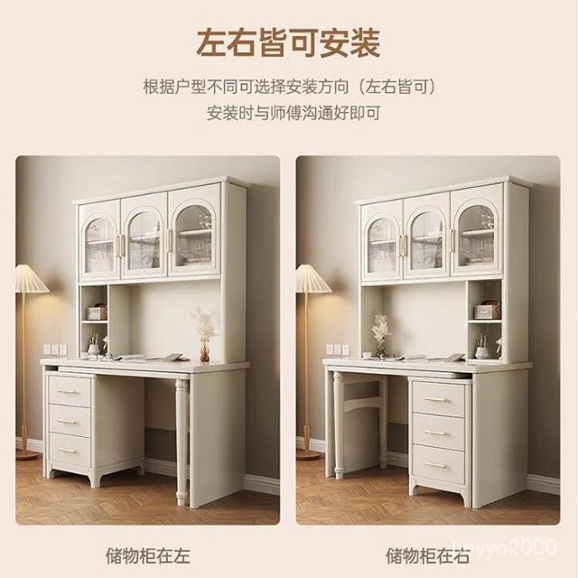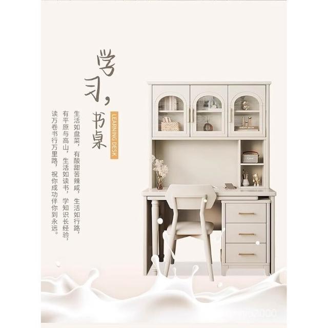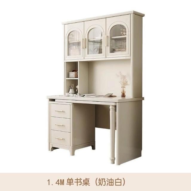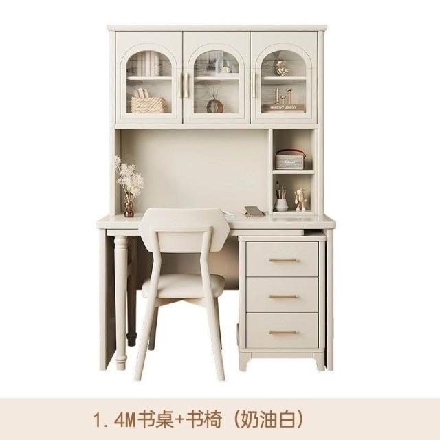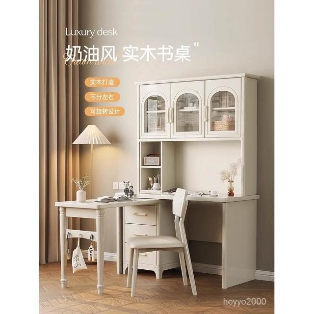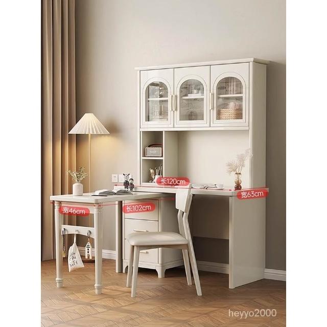 全臺免運 法式奶油風實木轉角書桌書櫃書架一體傢用學習桌簡約電腦桌椅組閤 MZC0