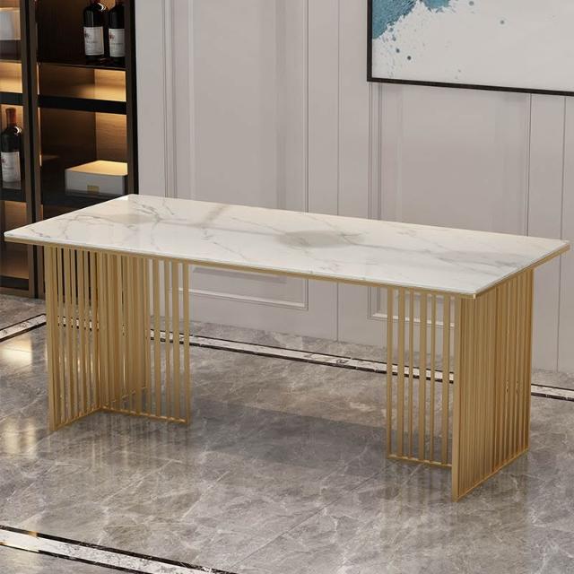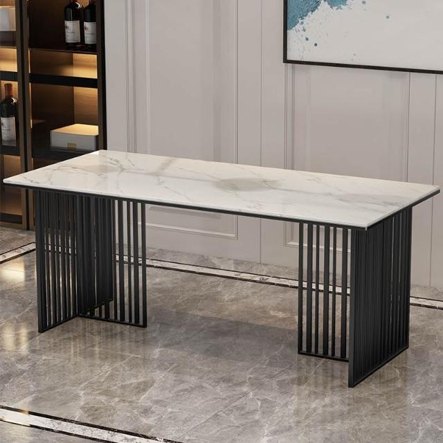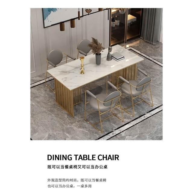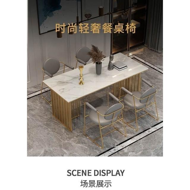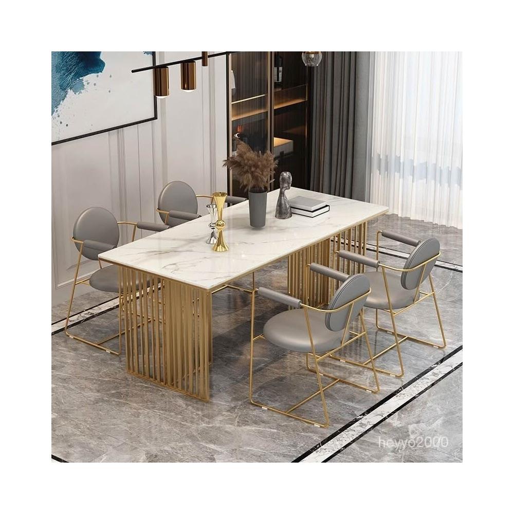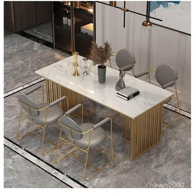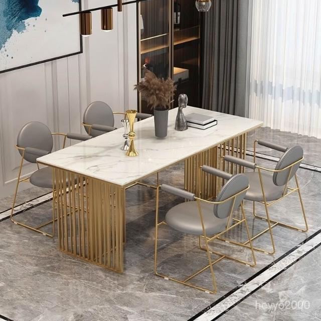 免運到府 新中式大理石餐桌椅組閤現代飯桌輕奢巖闆餐廳桌椅長方形洽談桌子 LLBD