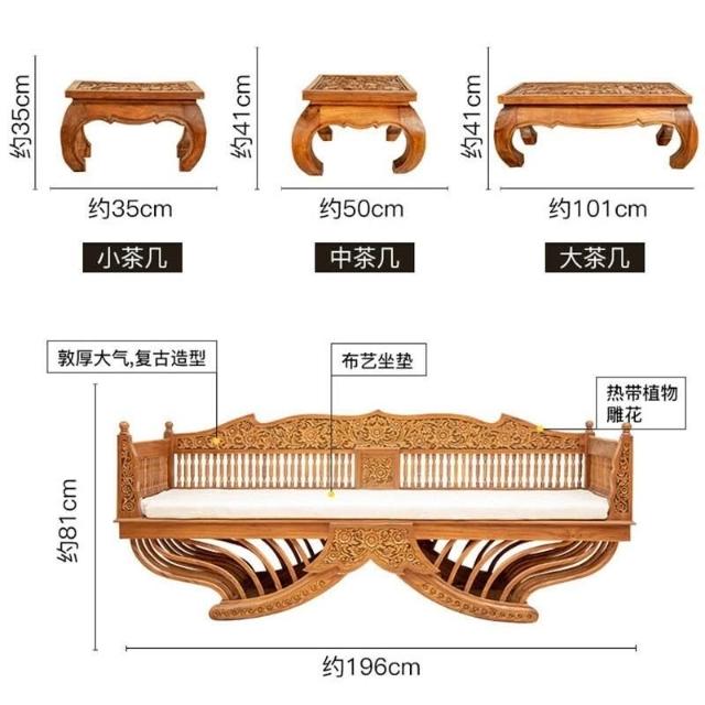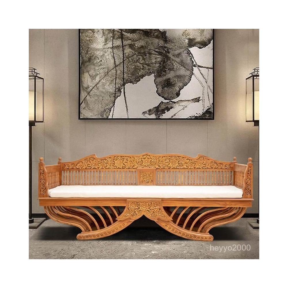 全臺免運 異麗東南亞風格傢具中式古典實木羅漢床泰式仿古木鵰客廳沙髮床 XM6V