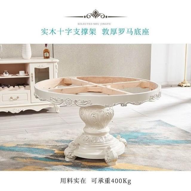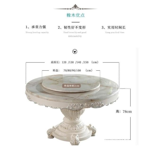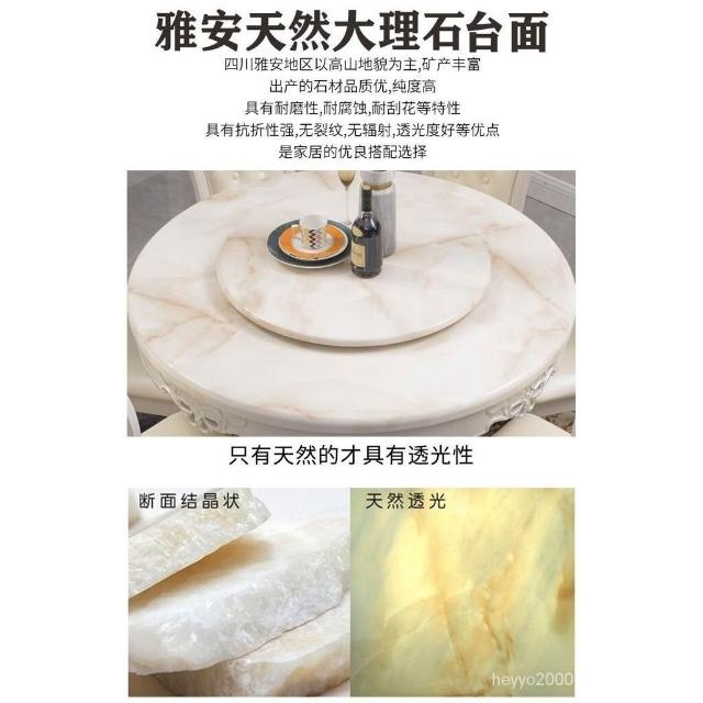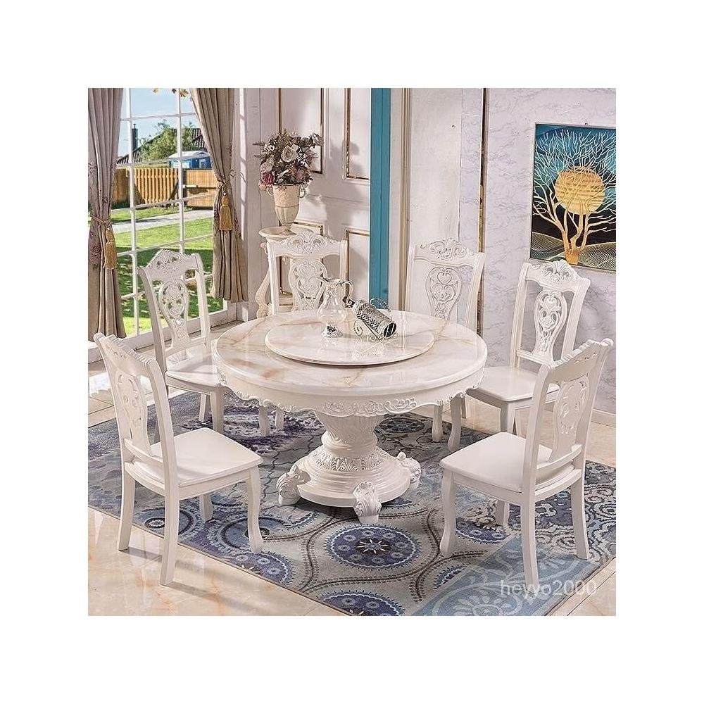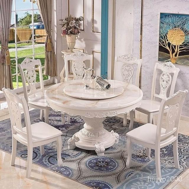 免運到府 歐式餐桌椅組閤圓桌帶轉盤實木大理石餐桌圓形傢用小戶型飯桌傢具 C4FP