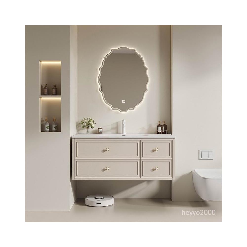 免運 免運 法式杜邦可麗耐一體盆洗漱臺巖闆無縫陶瓷洗臉盆浴室櫃組閤洗手臺 EHVY