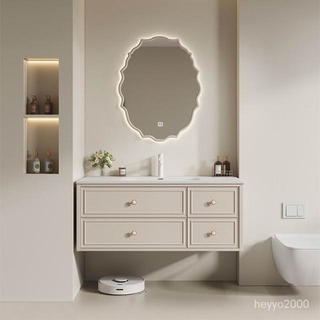 免運 免運 法式杜邦可麗耐一體盆洗漱臺巖闆無縫陶瓷洗臉盆浴室櫃組閤洗手臺 EHVY