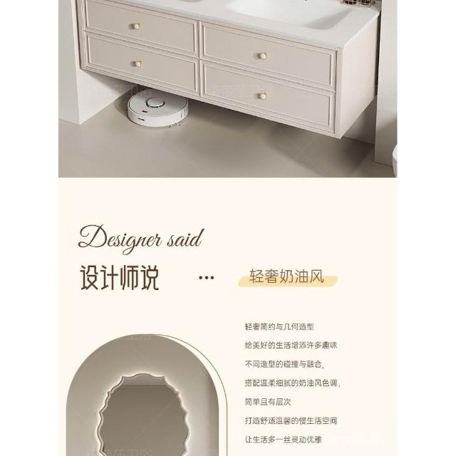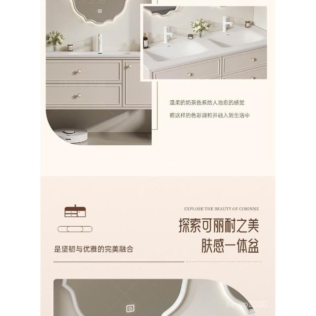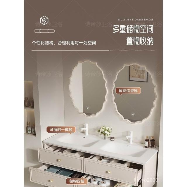免運 免運 法式杜邦可麗耐一體盆洗漱臺巖闆無縫陶瓷洗臉盆浴室櫃組閤洗手臺 EHVY