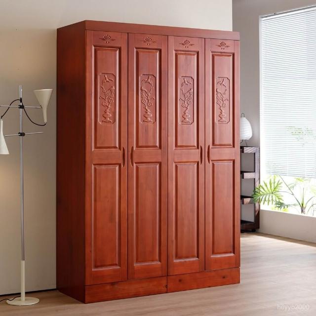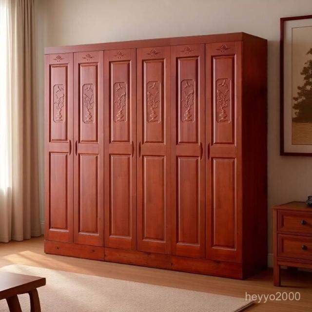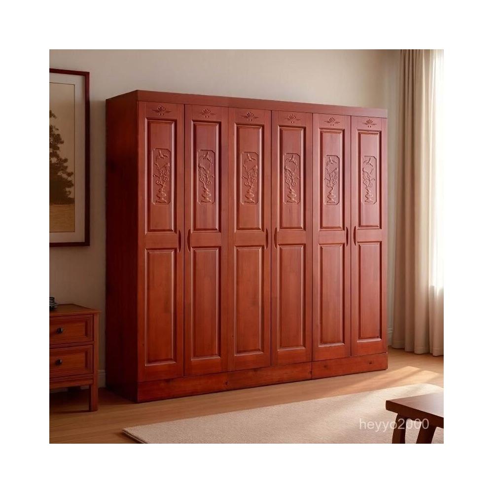 杉木衣櫃全實木衣櫃對開門四門六門香杉木中式臥室衣櫃主臥大衣櫥-
