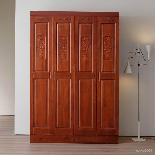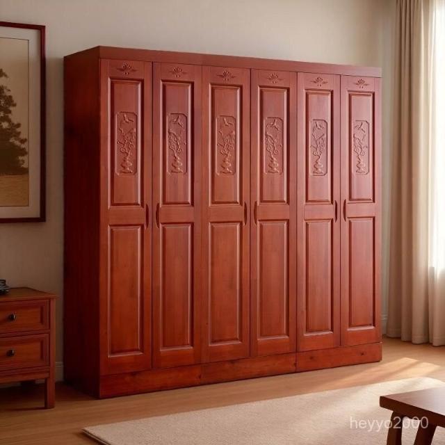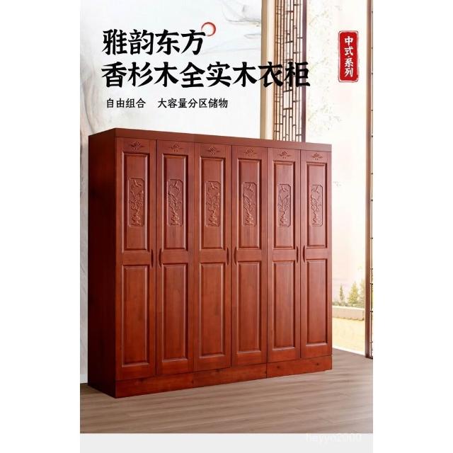 杉木衣櫃全實木衣櫃對開門四門六門香杉木中式臥室衣櫃主臥大衣櫥-