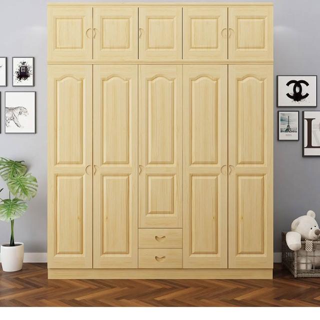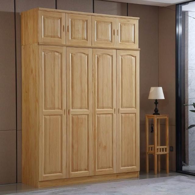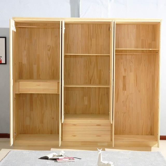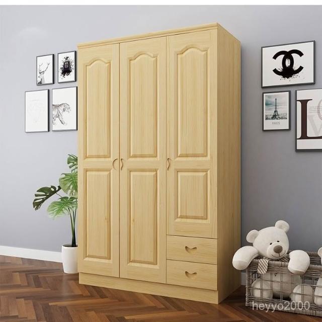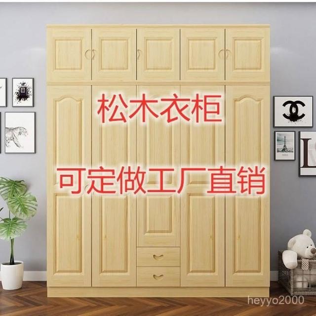 鬆木衣櫃實木大衣櫃家用臥室成人收納簡易組裝原木衣櫥木質小戶型-