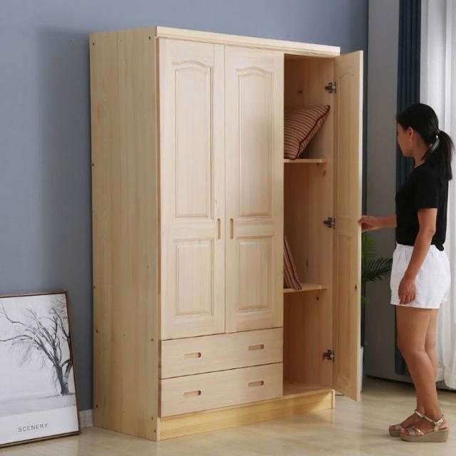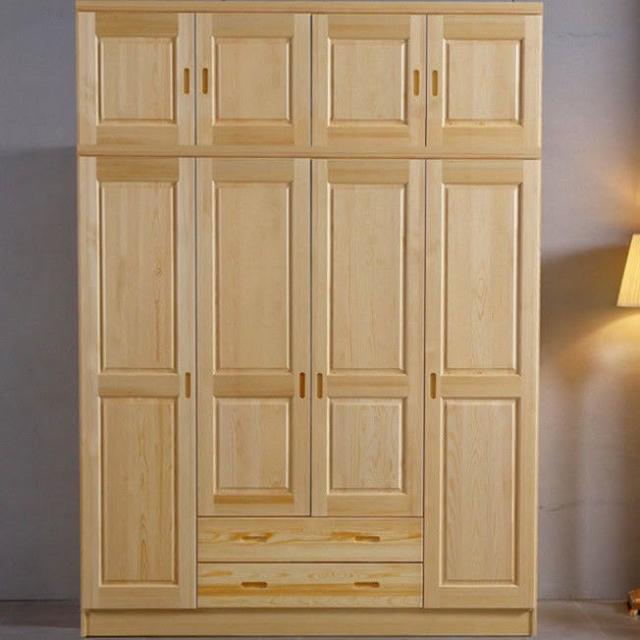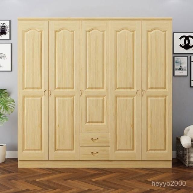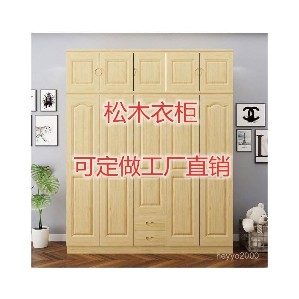 鬆木衣櫃實木大衣櫃家用臥室成人收納簡易組裝原木衣櫥木質小戶型-