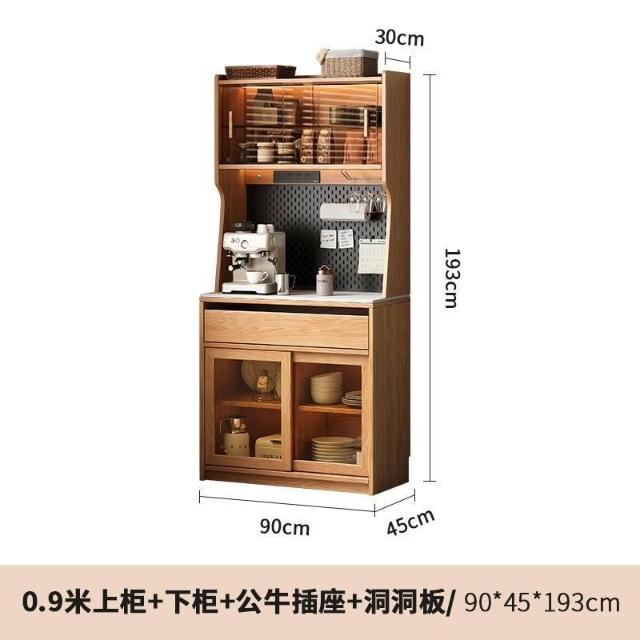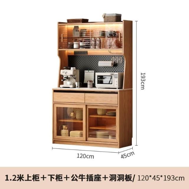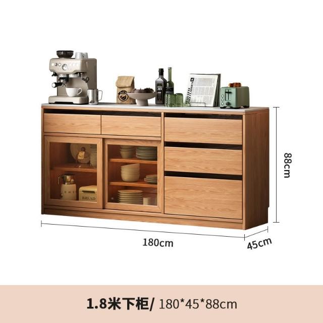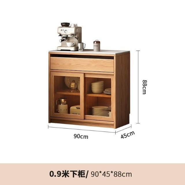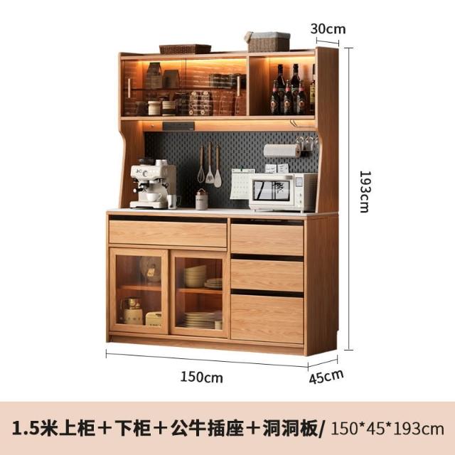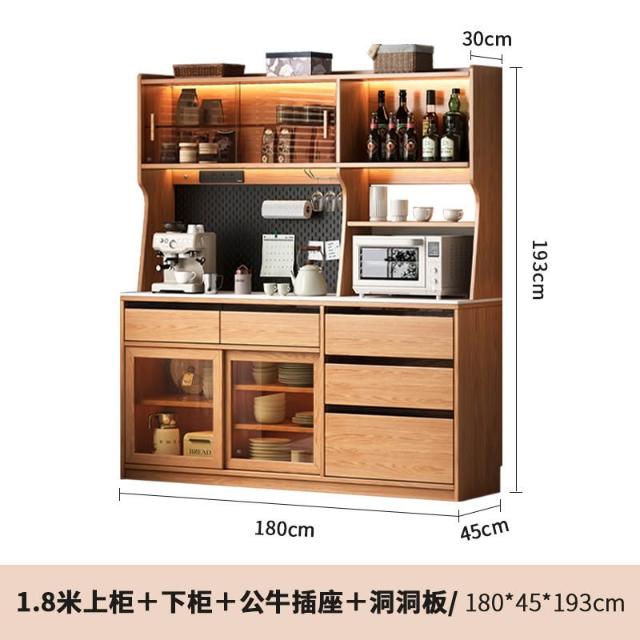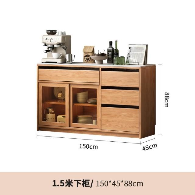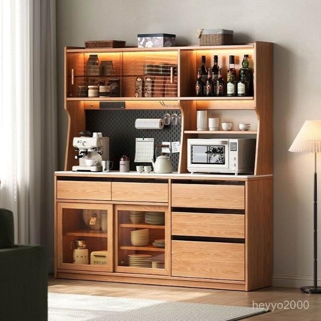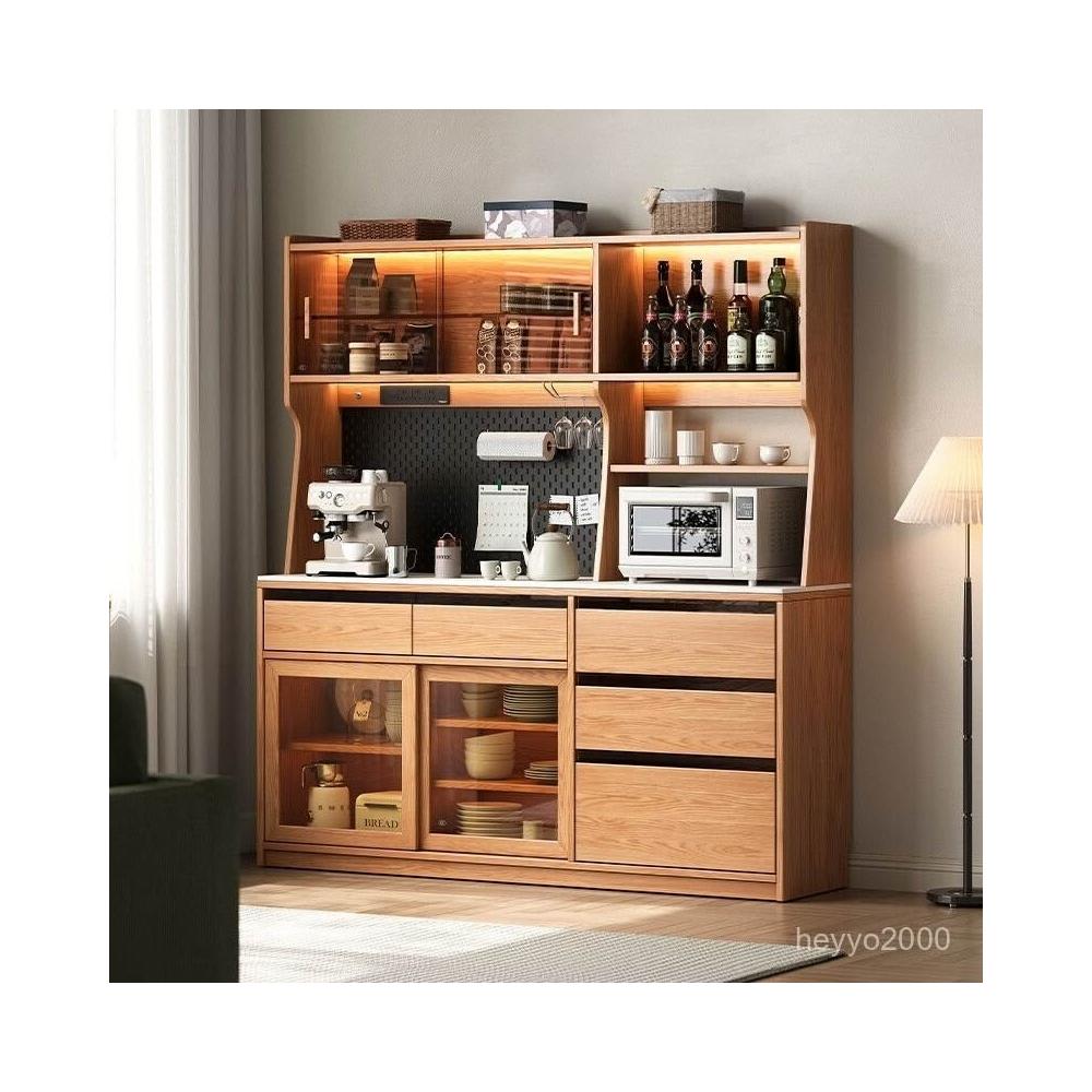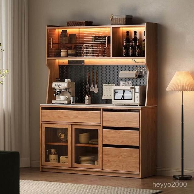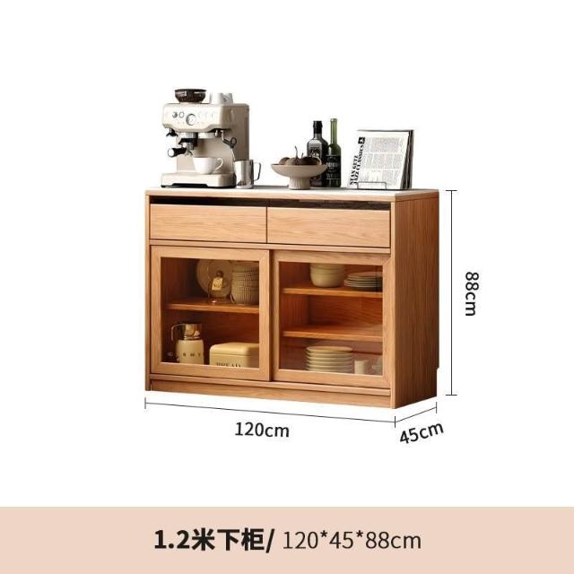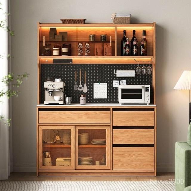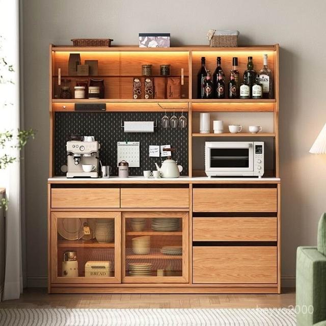 木立森實木橡木餐邊櫃酒櫃一體餐廳小戶型茶水櫃家用廚房儲物櫃子-