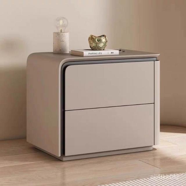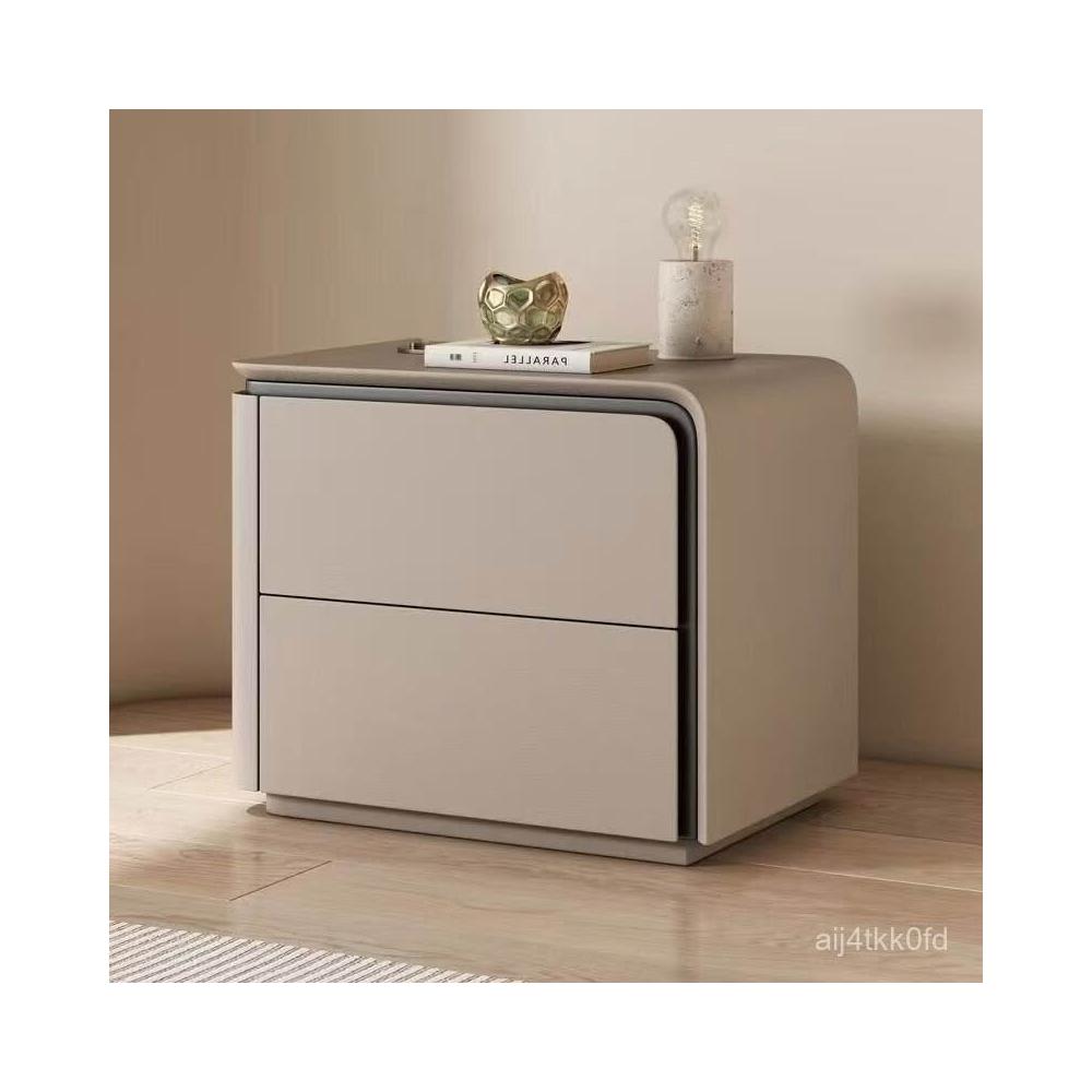 //簡約現代奶油小型實木皮質床頭櫃床邊櫃臥室高級新款儲物收納安裝