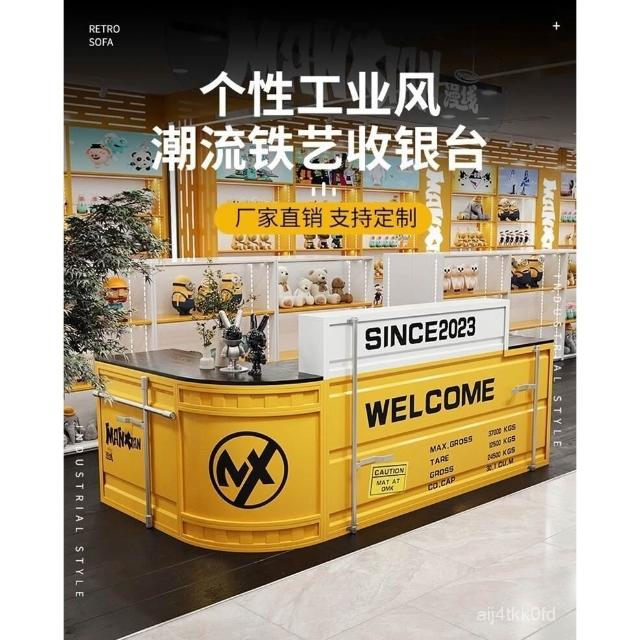 吧臺收銀臺工業風網紅餐廳手辦盲盒店集裝箱鐵藝潮玩店前臺接待臺