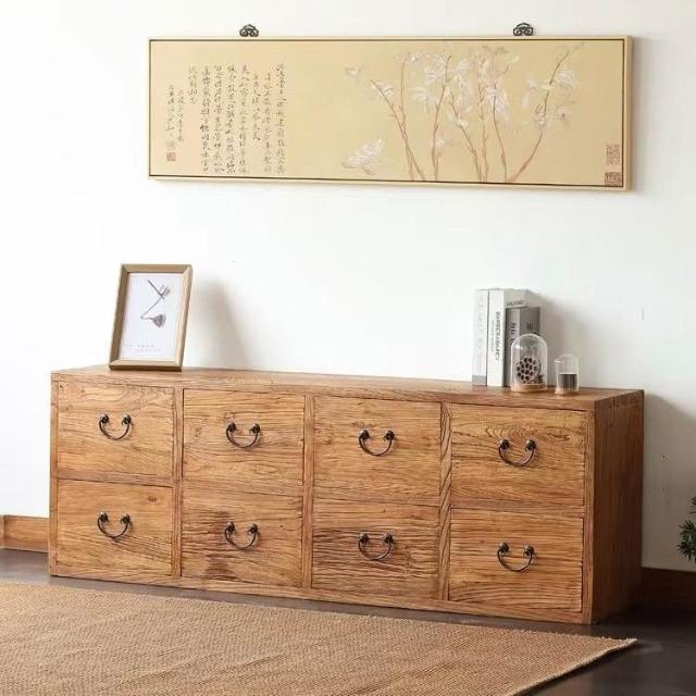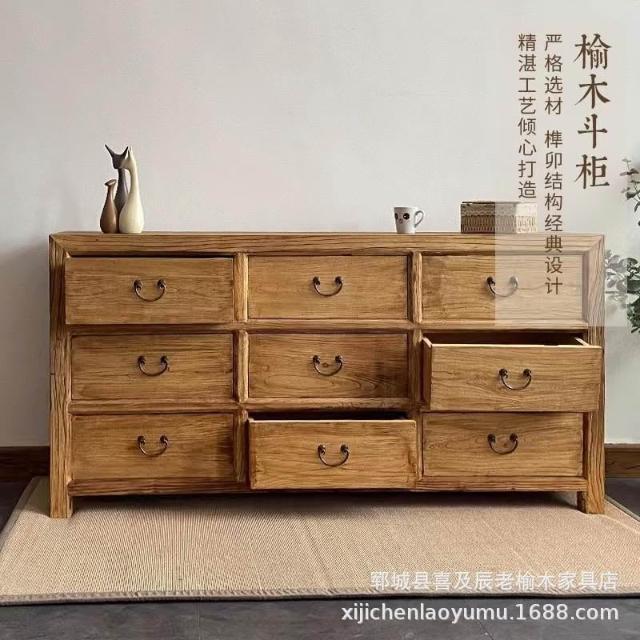 源頭廠傢批髮老榆木八鬥櫃六鬥櫃實木儲物收納地櫃複古中式餐邊櫃