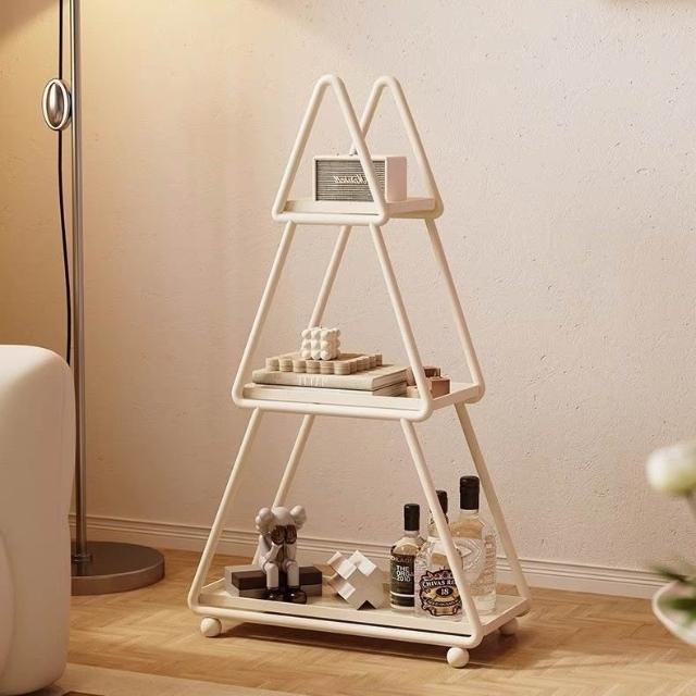 奶油風多層置物架客廳鐵藝擺件落地式收納層架沙髮邊裝飾儲物架子