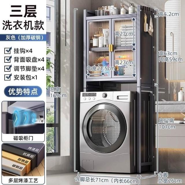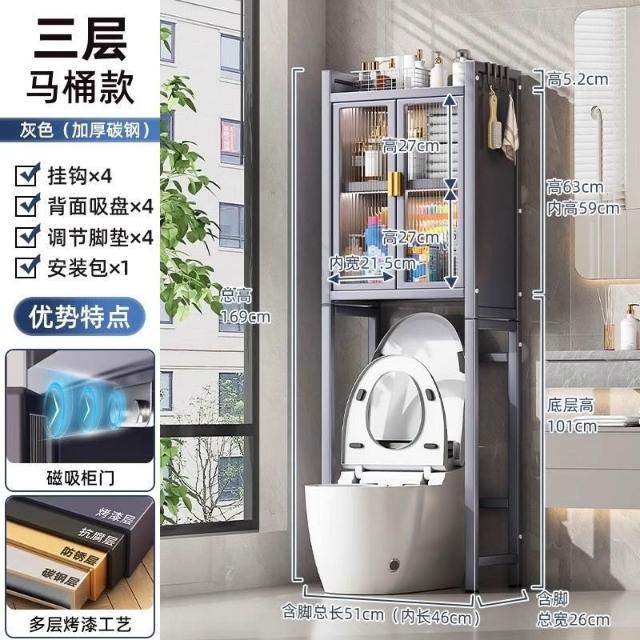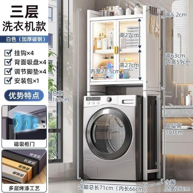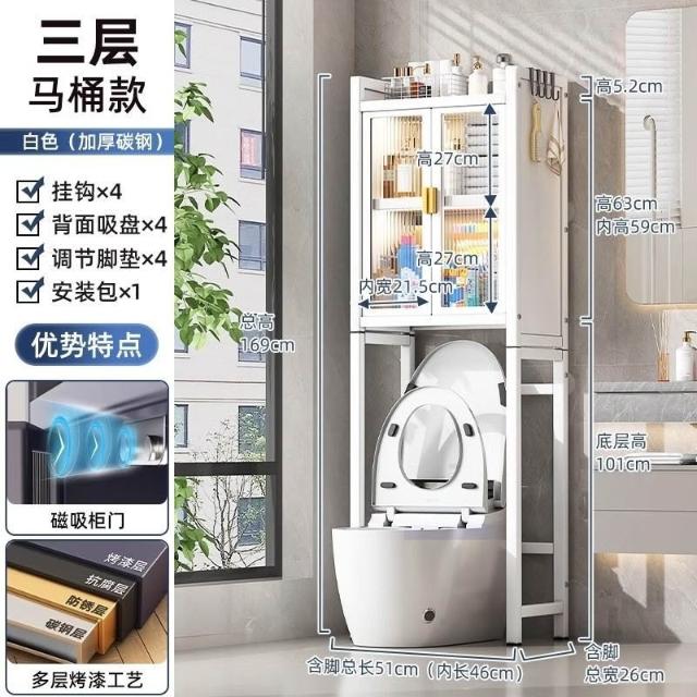 優懃衛生間馬桶上方置物架多功能儲物櫃落地式洗衣機浴室收納架子