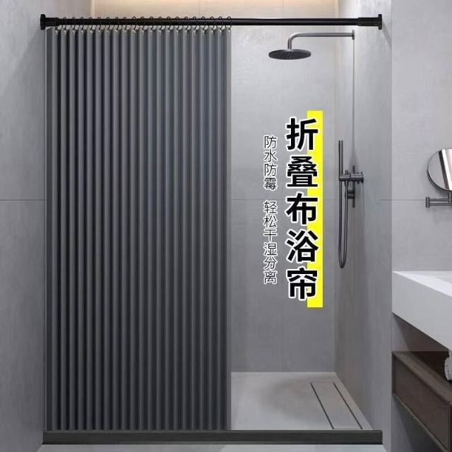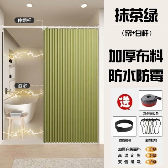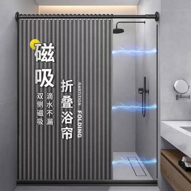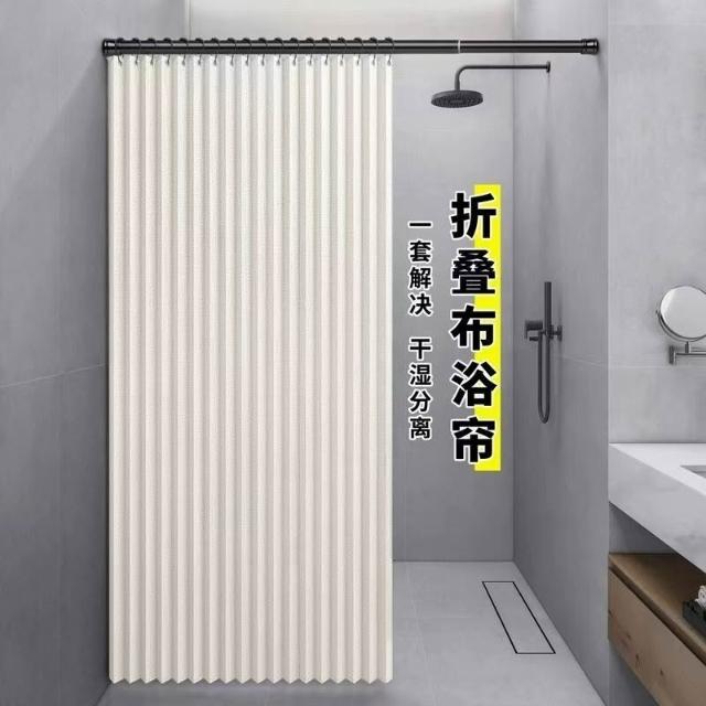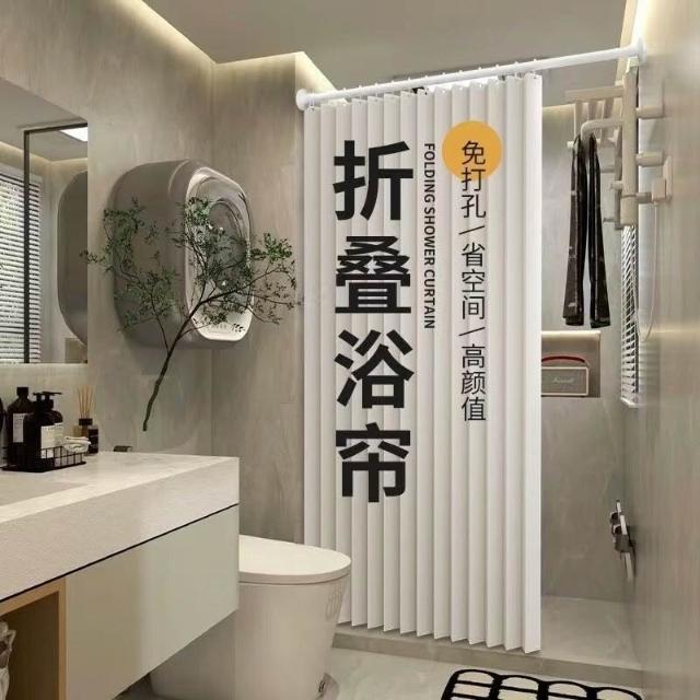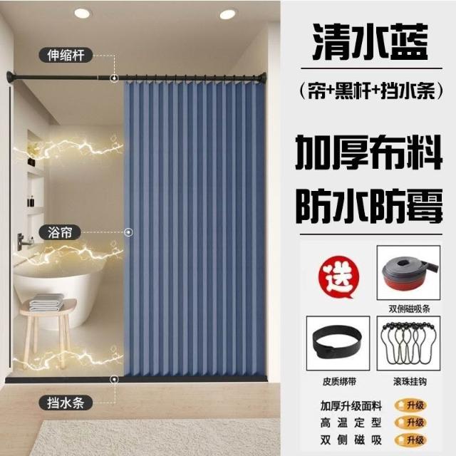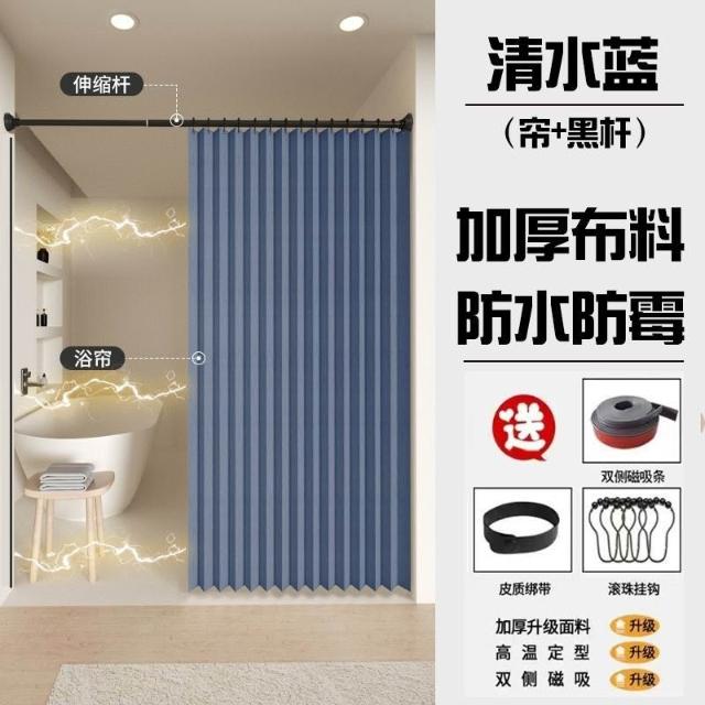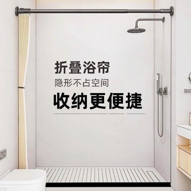 衛生間折疊浴簾免打孔伸縮桿浴室遮擋幹濕分離隱形浴室隔斷簾保暖