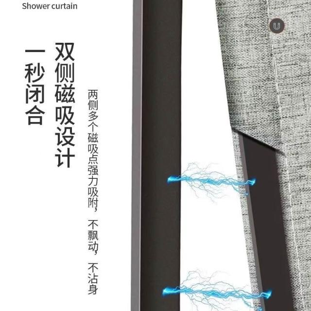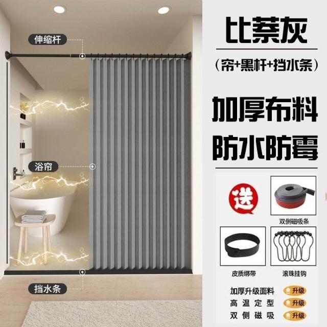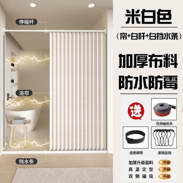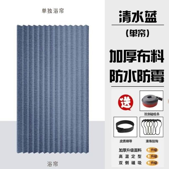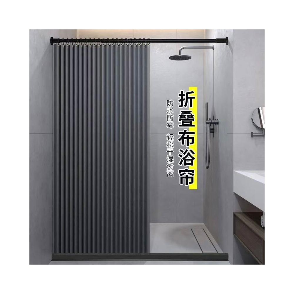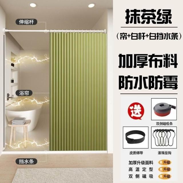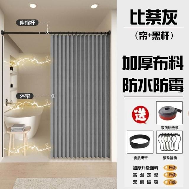 衛生間折疊浴簾免打孔伸縮桿浴室遮擋幹濕分離隱形浴室隔斷簾保暖