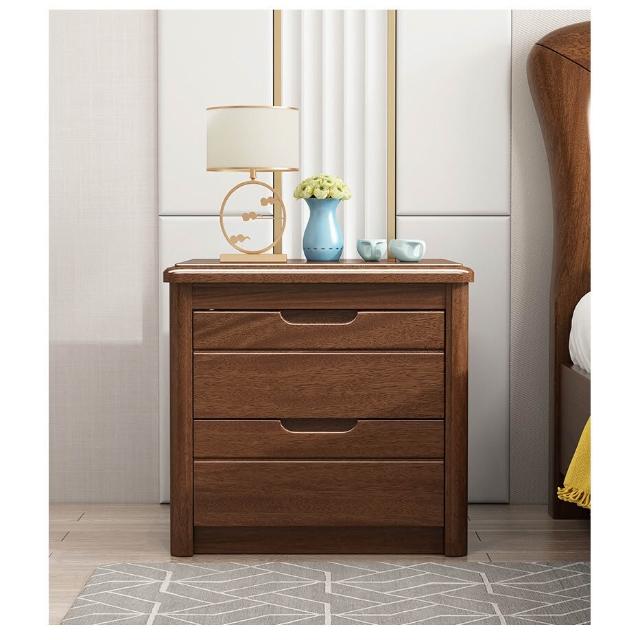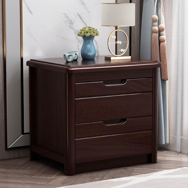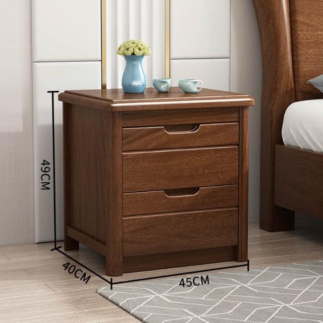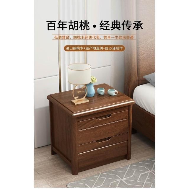 包郵全實木床頭櫃現代中式黑胡桃木小戶型卧室收納儲物床邊櫃整裝