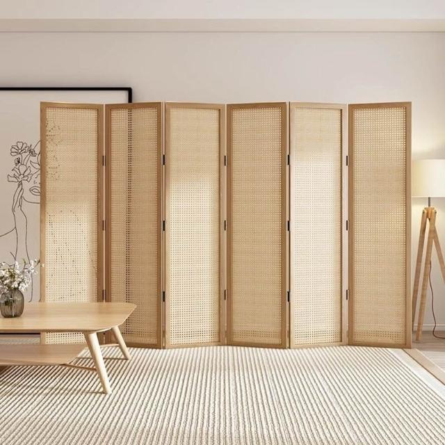 日式實木屏風藤編隔斷客廳辦公室遮擋酒店可折疊簡約移動折屏