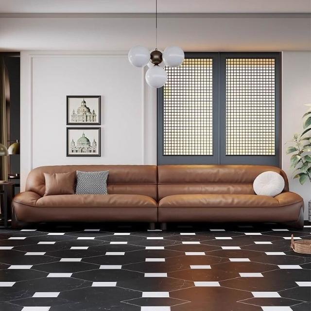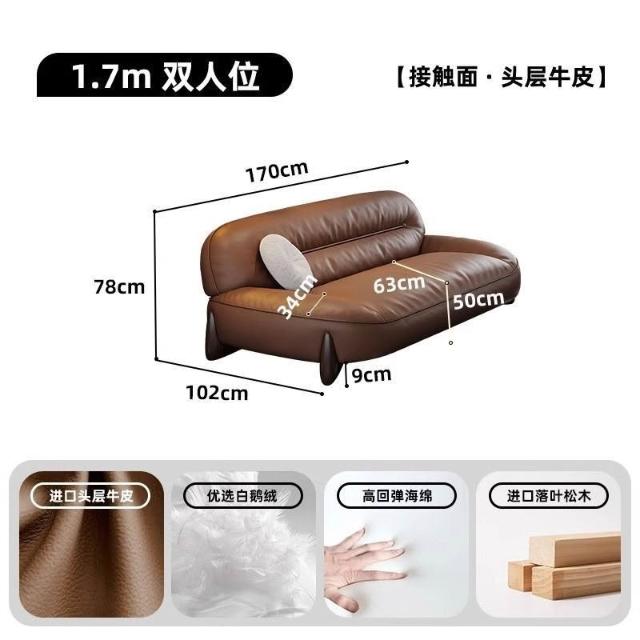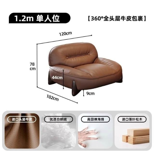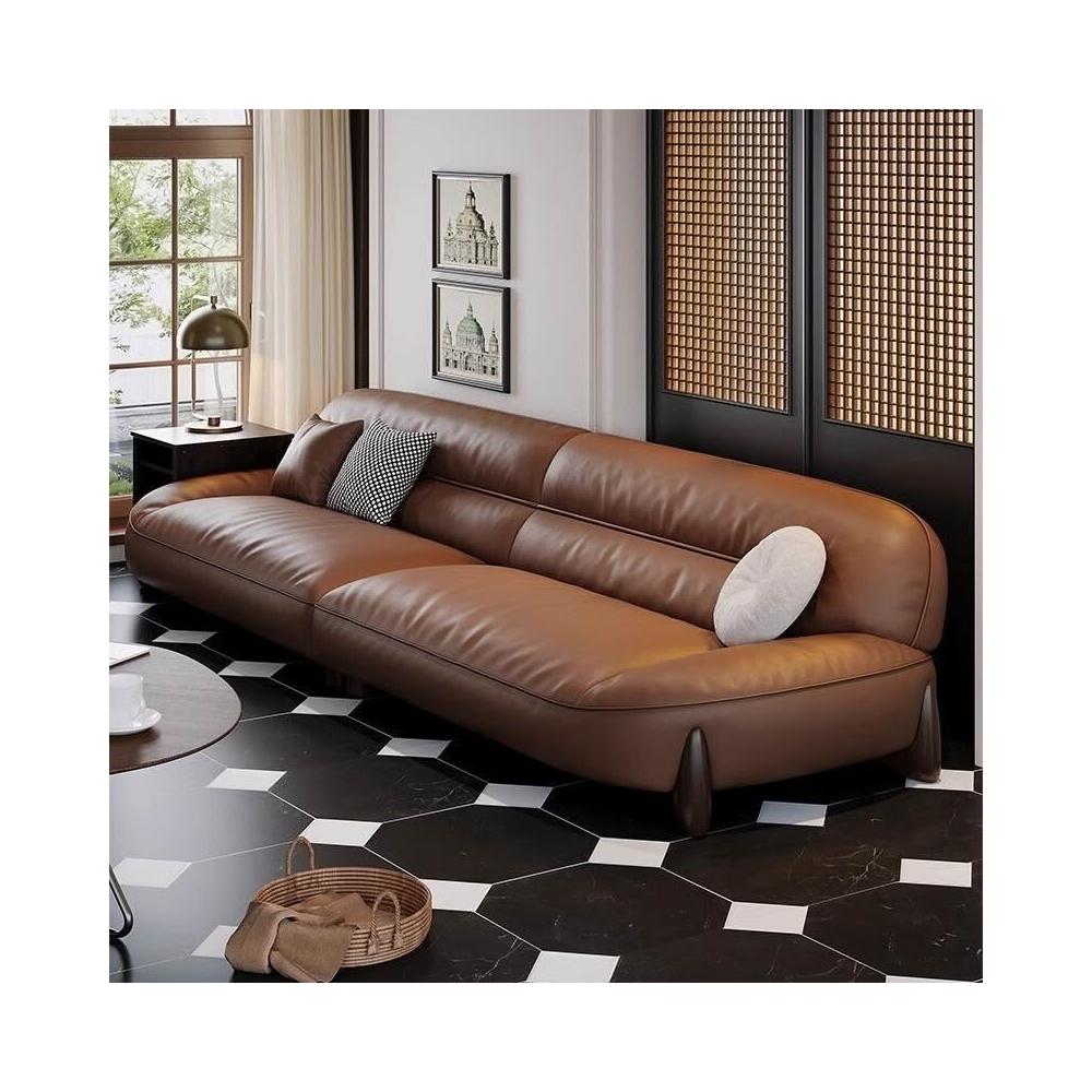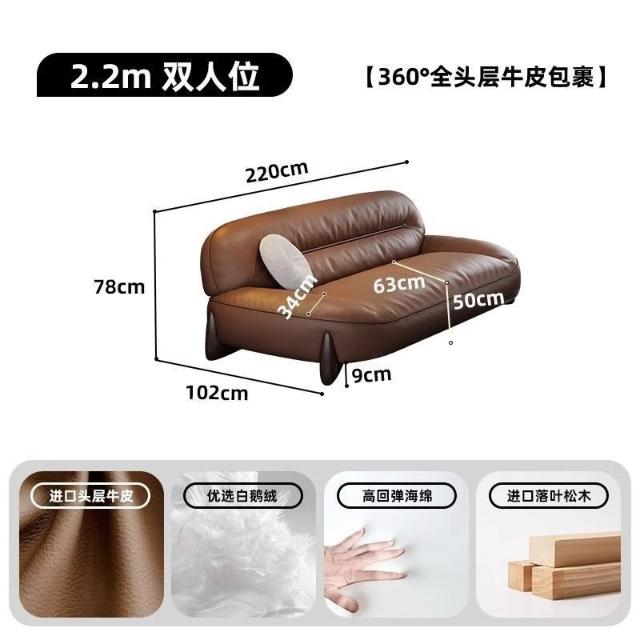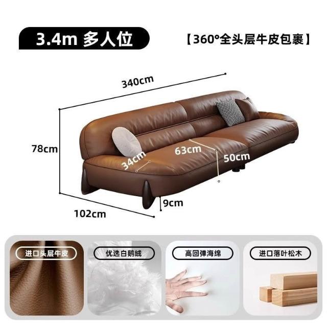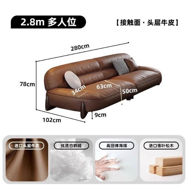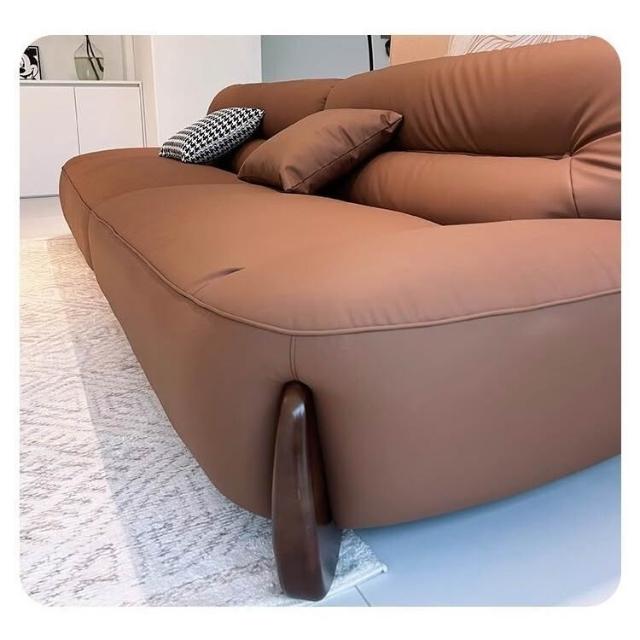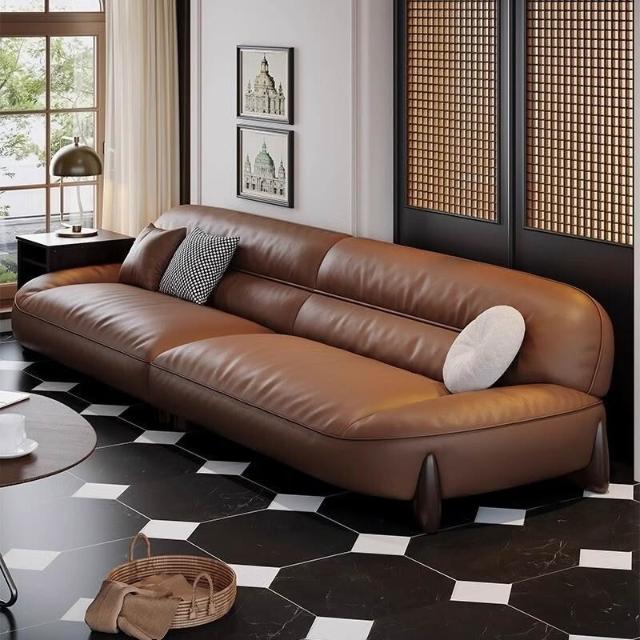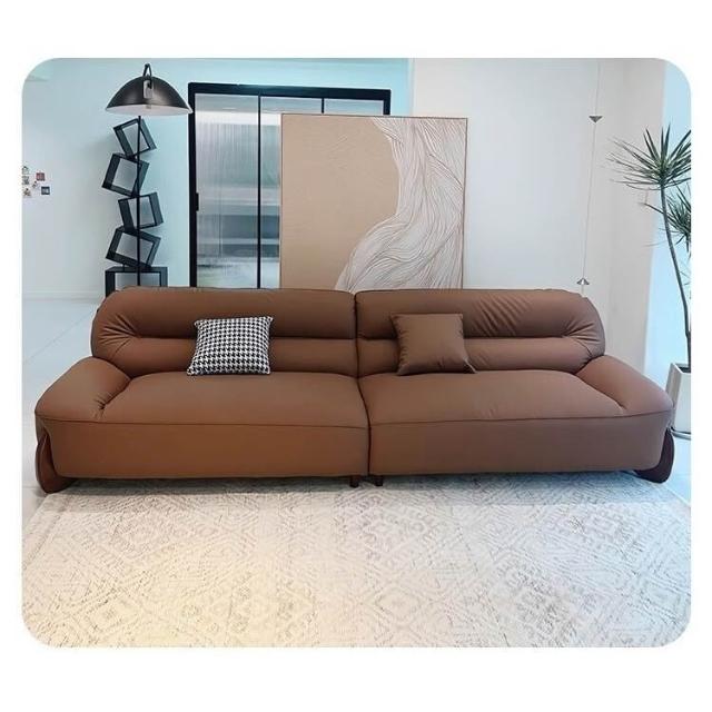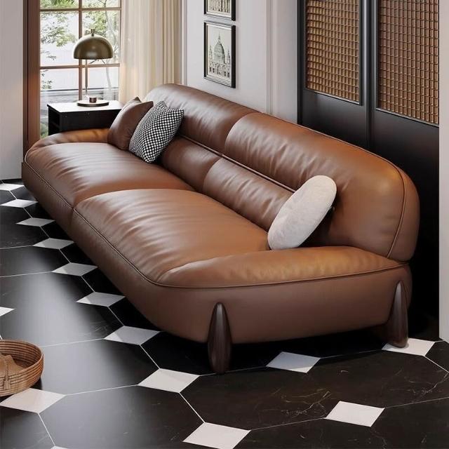 真皮沙髮意式簡約頭層牛皮棕色高密度海綿小戶型傢用直排寬坐深