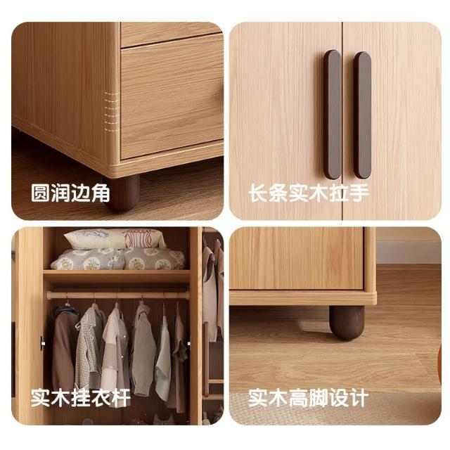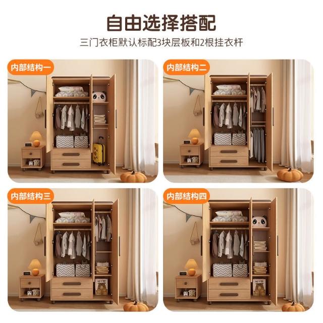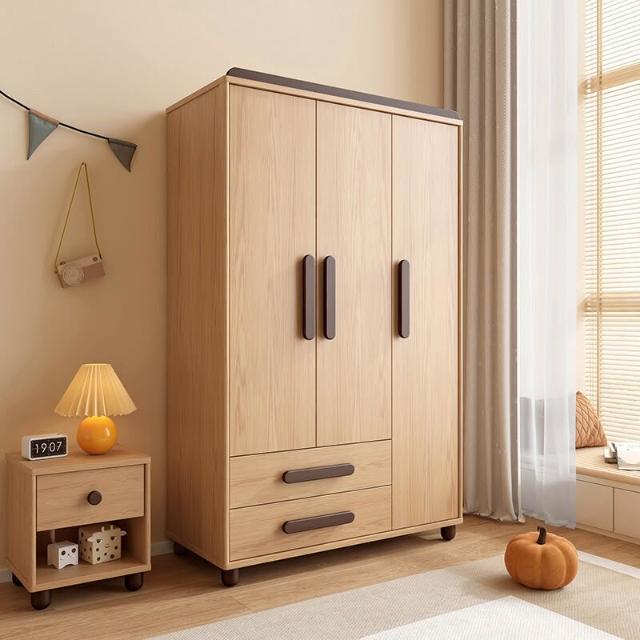 衣櫃 收納櫃 儿童衣柜 小戶型衣櫃 实木卧室家用现代简约小户型衣橱双三门衣柜