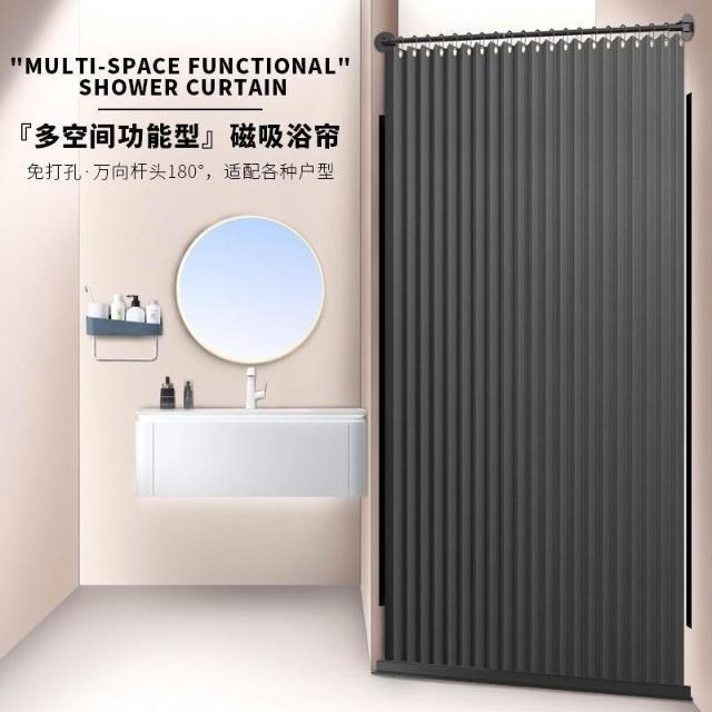 多空間磁吸型浴室折疊簾免打孔伸縮桿防水防黴衛生間隔斷簾可定製